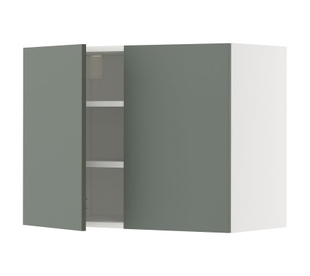 5 301грнНавесной шкаф с полками/2 дверцы, белый/Nickebo матовый серо-зеленый, 80х60 смПод заказ