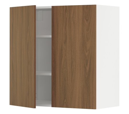 Навесной шкаф с полками/2 дверцы, белый/Тисторп имитация коричневого ореха, 80х80 смОжидаем у поставщика