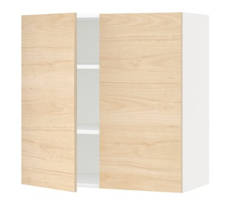 Навесной шкаф с полками/2 дверцы, белый/Аскерсунд узор светлый ясень, 80х80 смОжидаем у поставщика