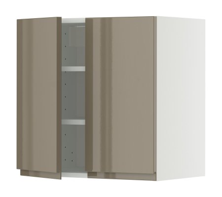 Навесной шкаф с полками/2 дверцы, белый/Voxtorp глянец темно-серо-коричневый, 60x60 смОжидаем у поставщика