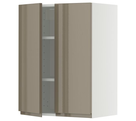 Навесной шкаф с полками/2 дверцы, белый/Voxtorp глянец темно-серо-коричневый, 60x80 смОжидаем у поставщика
