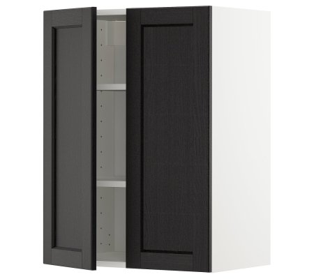 Навесной шкаф с полками/2 дверцами, Lerhyttan белая/черная морилка, 60х80 смОжидаем у поставщика
