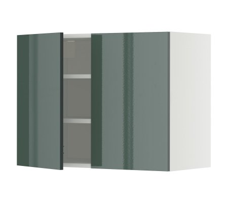 Навесной шкаф с полками/2 дверцы, белый/Kallarp темно-серо-зеленый глянец, 80x60 см