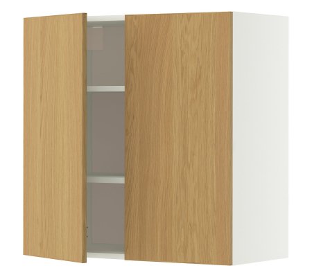 8 161грнНавесной шкаф с полками/2 двери, белый/шпон дуба Синарп, 80x80 смПод заказ