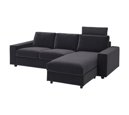3-местный диван с шезлонгом, широкими подлокотниками и подголовником/Дьюпарп темно-серыйОжидаем у поставщика