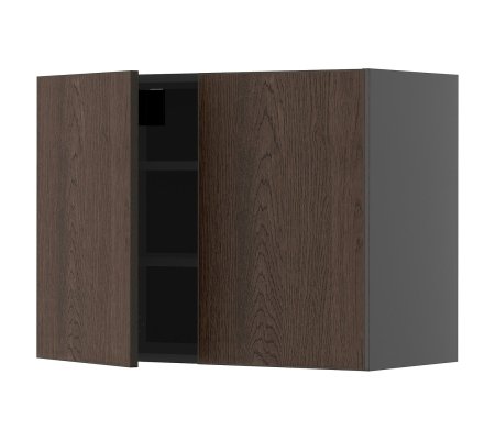 Навесной шкаф с полками/2 дверцы, черно-серый/синарп коричневый, 80x60 смОжидаем у поставщика
