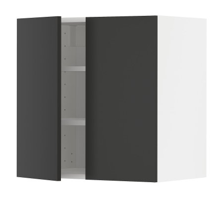 - 5 343грнНавесной шкаф с полками/2 дверцы, белый/Nickebo матовый антрацит, 60х60 смПод заказ