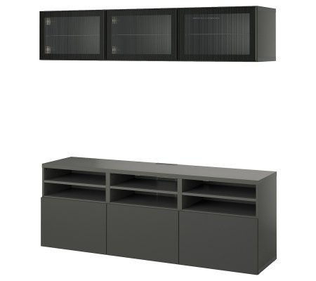 - 30 132грнКомбинация ТВ/стеклянная дверь, темно-серый Лаппвикен/Фельсвик антрацит, 180x42x192 смПод заказ
