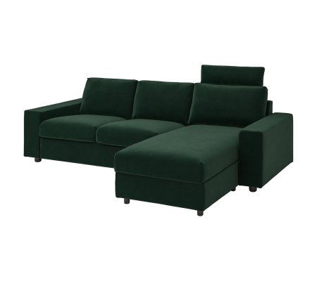 3-местный диван с шезлонгом, широкими подлокотниками и подголовником/Дьюпарп темно-зеленыйОжидаем у поставщика
