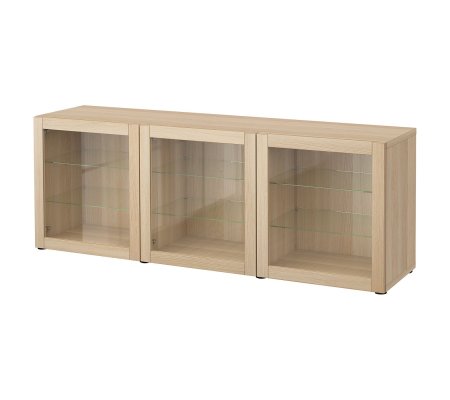 13 881грнКомбинация с дверцами, дуб беленый/Синдвик дуб беленый прозрачное стекло, 180x42x65 смПод заказ