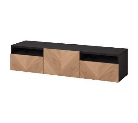 16 671грнТумба под ТВ с ящиками и дверцами, черно-коричневый/дубовый шпон Хедевикен, 180x42x39 смПод заказ
