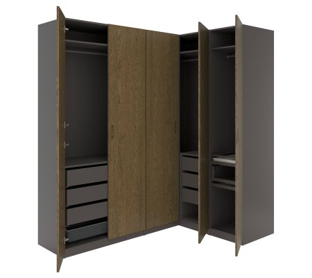 88 164грнУгловой шкаф, шпон дуба, тонированный в темно-серый/коричневый цвет, 211/161x236 смПод заказ