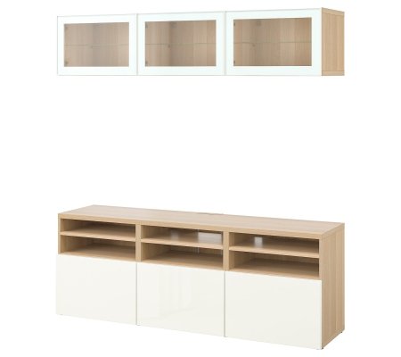29 505грнКомбинация ТВ/стеклянные дверцы, дуб беленый/Сельсвикен глянцевое белое прозрачное стекло, 180x42x192 смПод заказ