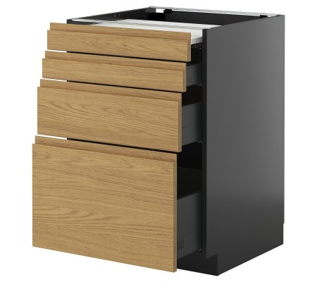 Настольный шкаф с выдвижной столешницей/3 ящика, черно-серый/имитация Voxtorp. дуб, 60x60 смОжидаем у поставщика