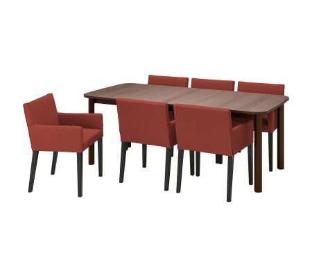 Стол и 6 стульев, коричнево-черный/Гуннаред красно-коричневый, 150/205/260 смОжидаем у поставщика