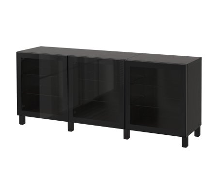 16 540грнКомбинация с дверцами, черно-коричневый/Глассвик/Стуббарп черный/прозрачное стекло, 180х42х74 см