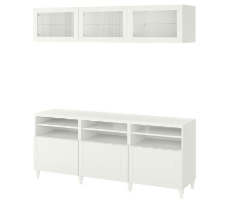 Комбинация ТВ/стекл дверцы, белый/Смевикен/Каббарп белый прозрачное стекло, 180х42х192 смОжидаем у поставщика