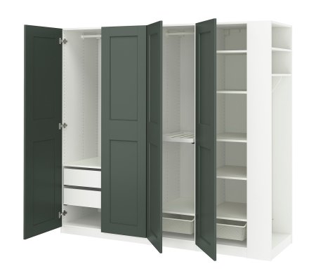 Гардеробная комбинация, белая, серо-зеленая/белая, 220х60х201 смОжидаем у поставщика
