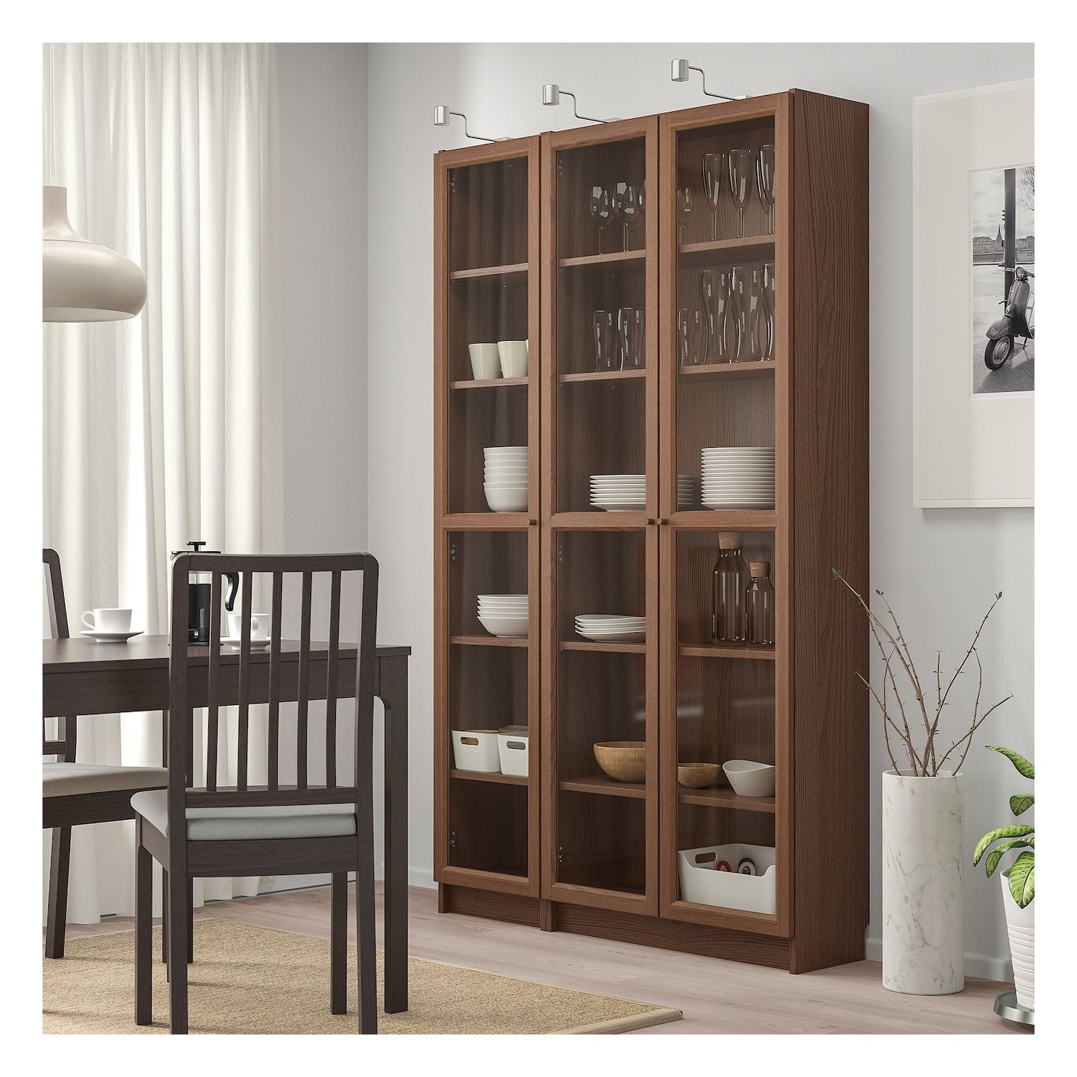 Стеклянная дверца защищает ваши любимые вещи от пыли, сохраняя при этом видимость.