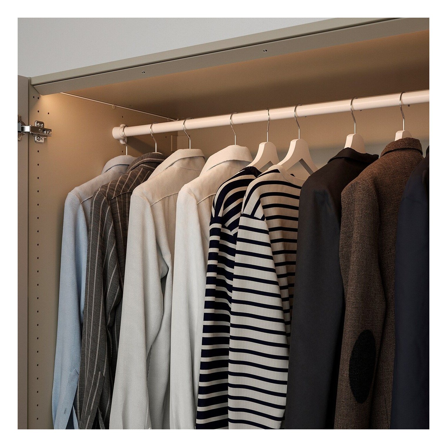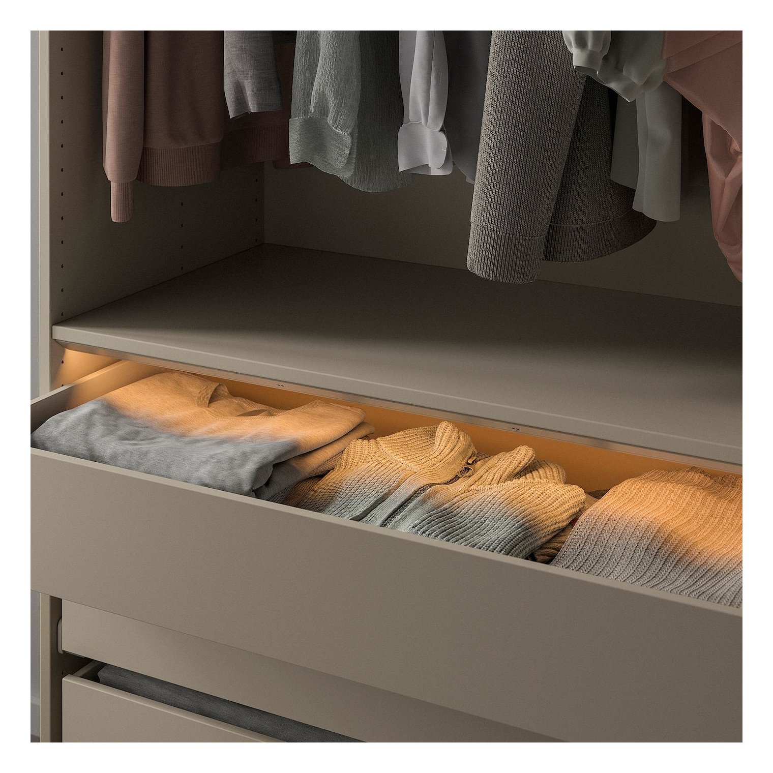 Он освещает внутреннюю часть вашего гардероба ПАКС, поэтому вы можете легко видеть и выбирать одежду даже темным утром.