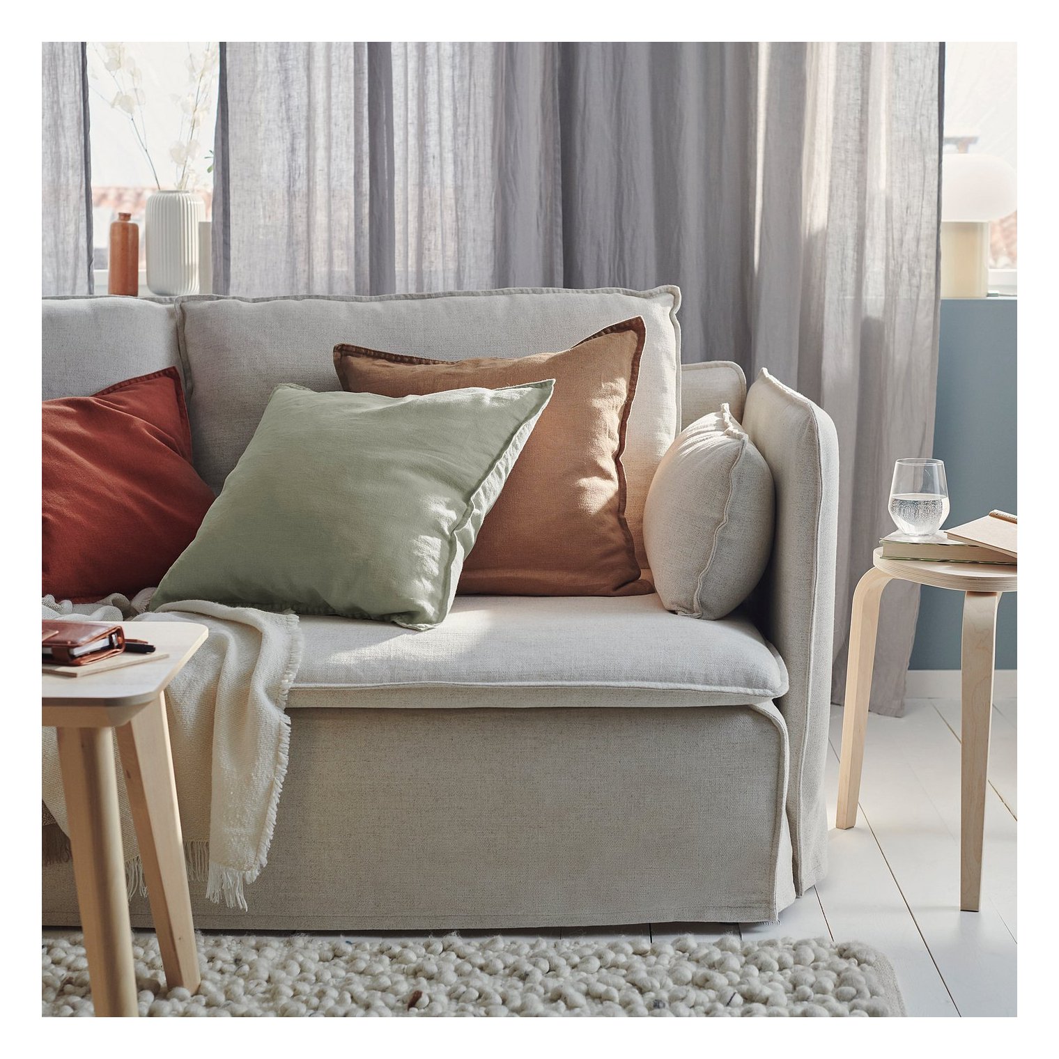 Чехол на подушку изготовлен из льна — прочного натурального материала со слегка неравномерной фактурой.