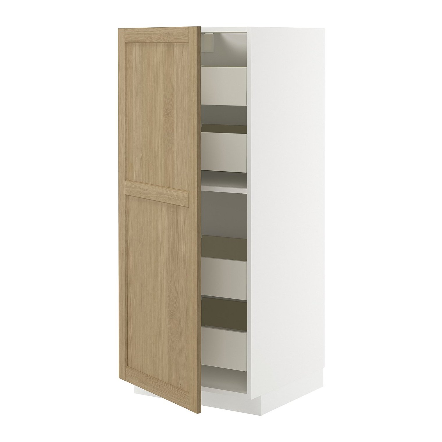 Полностью выдвижной ящик нижнего/высокого шкафа с ящиками обеспечивает хороший обзор и доступ к содержимому.