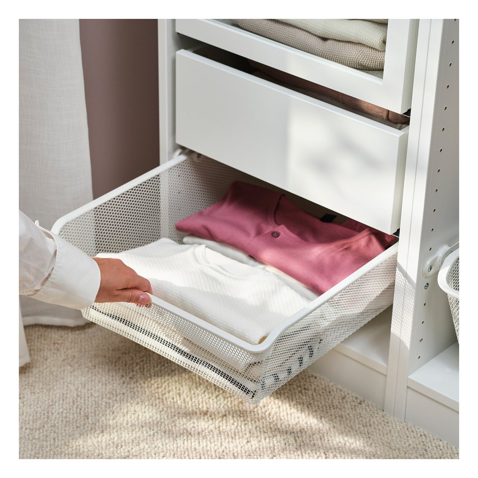 Сетчатая корзина воздухопроницаема и идеально подходит для хранения сложенной одежды, носков или аксессуаров.