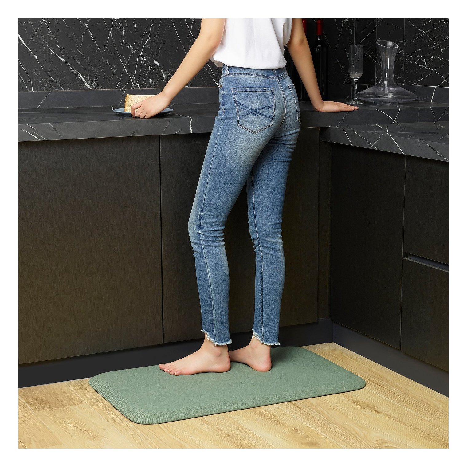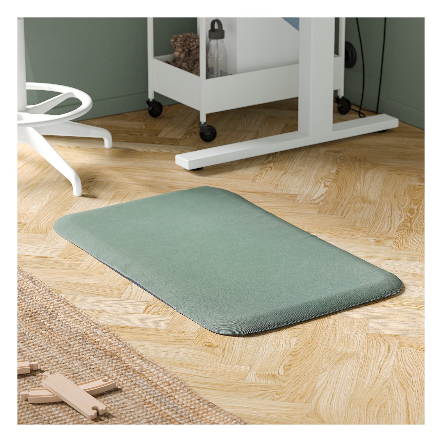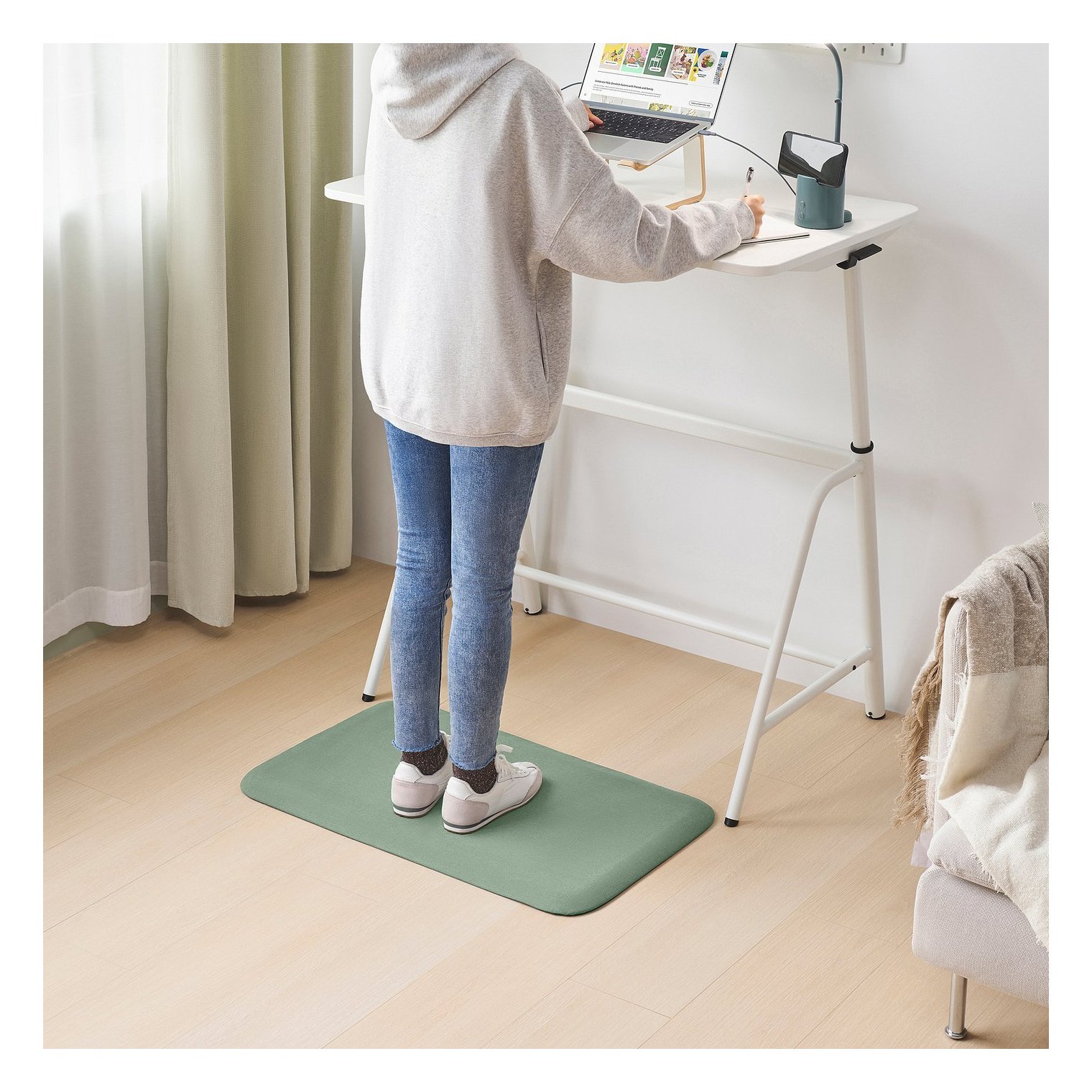 Идеально подходит для тех, кто долго стоит за столом, так как плотная пена коврика уменьшает давление на ступни, колени и спину.
