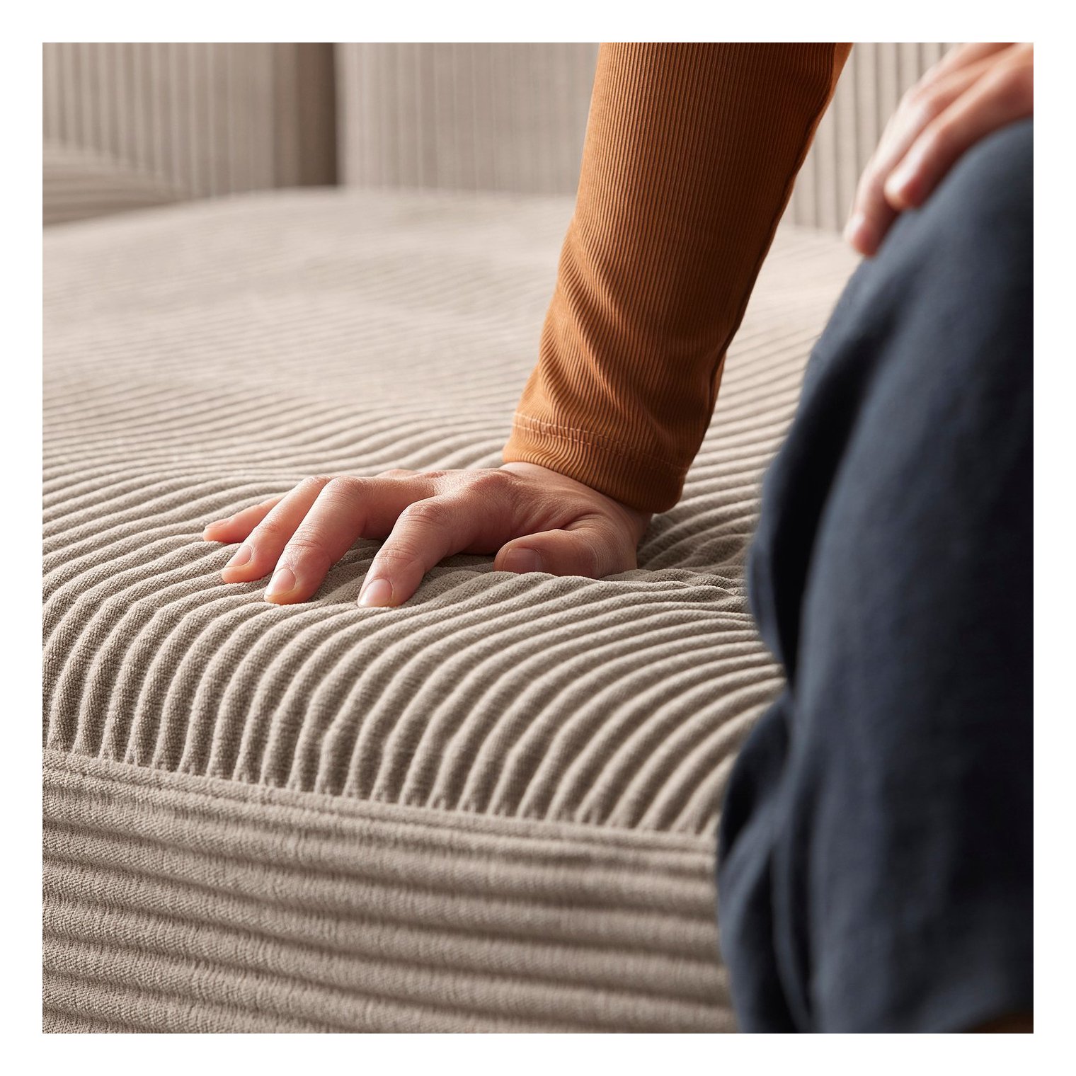 Этот чехол изготовлен из прочной вельветовой ткани Samsala в сверхширокую рубчику, обеспечивающей комфорт и придающий особый характер помещению.