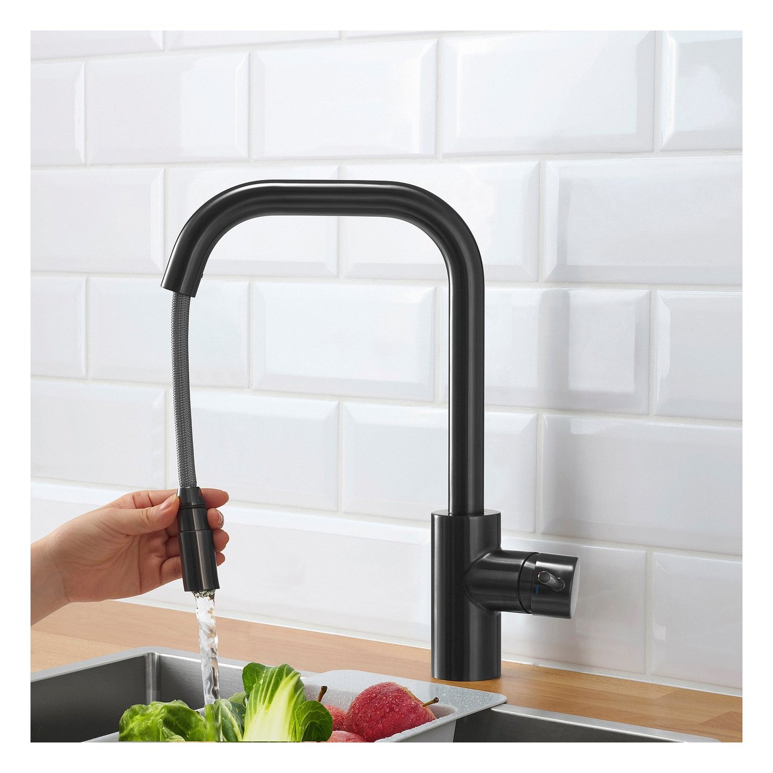 Вставка смесителя оснащена жесткими керамическими дисками, которые выдерживают сильное трение, возникающее при изменении температуры воды.