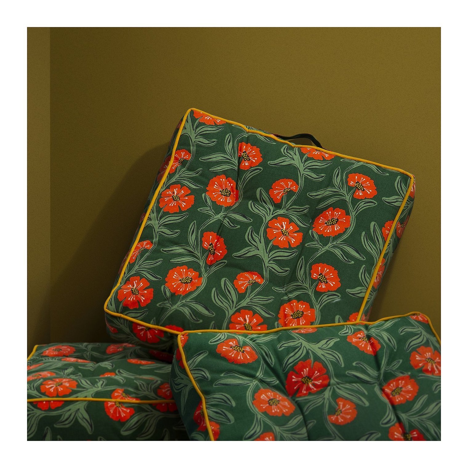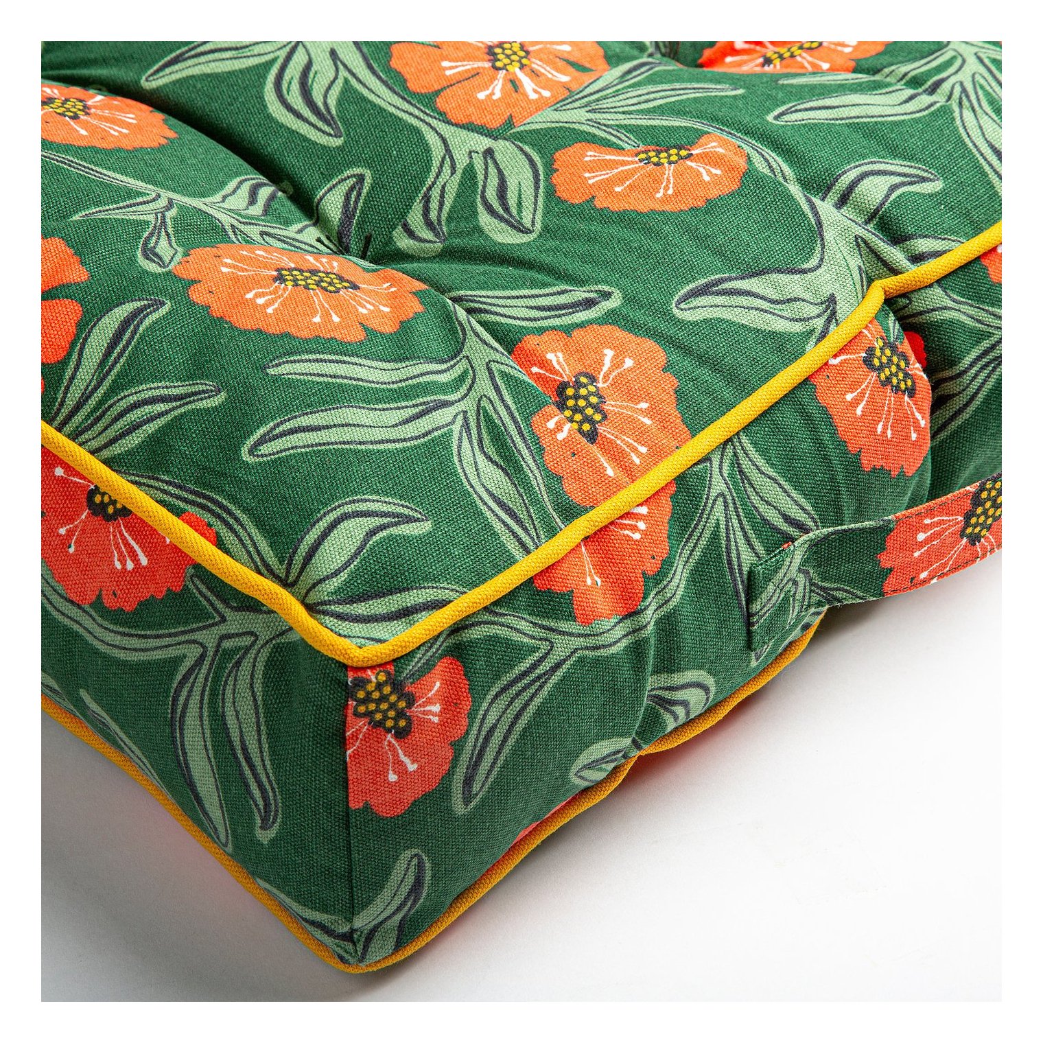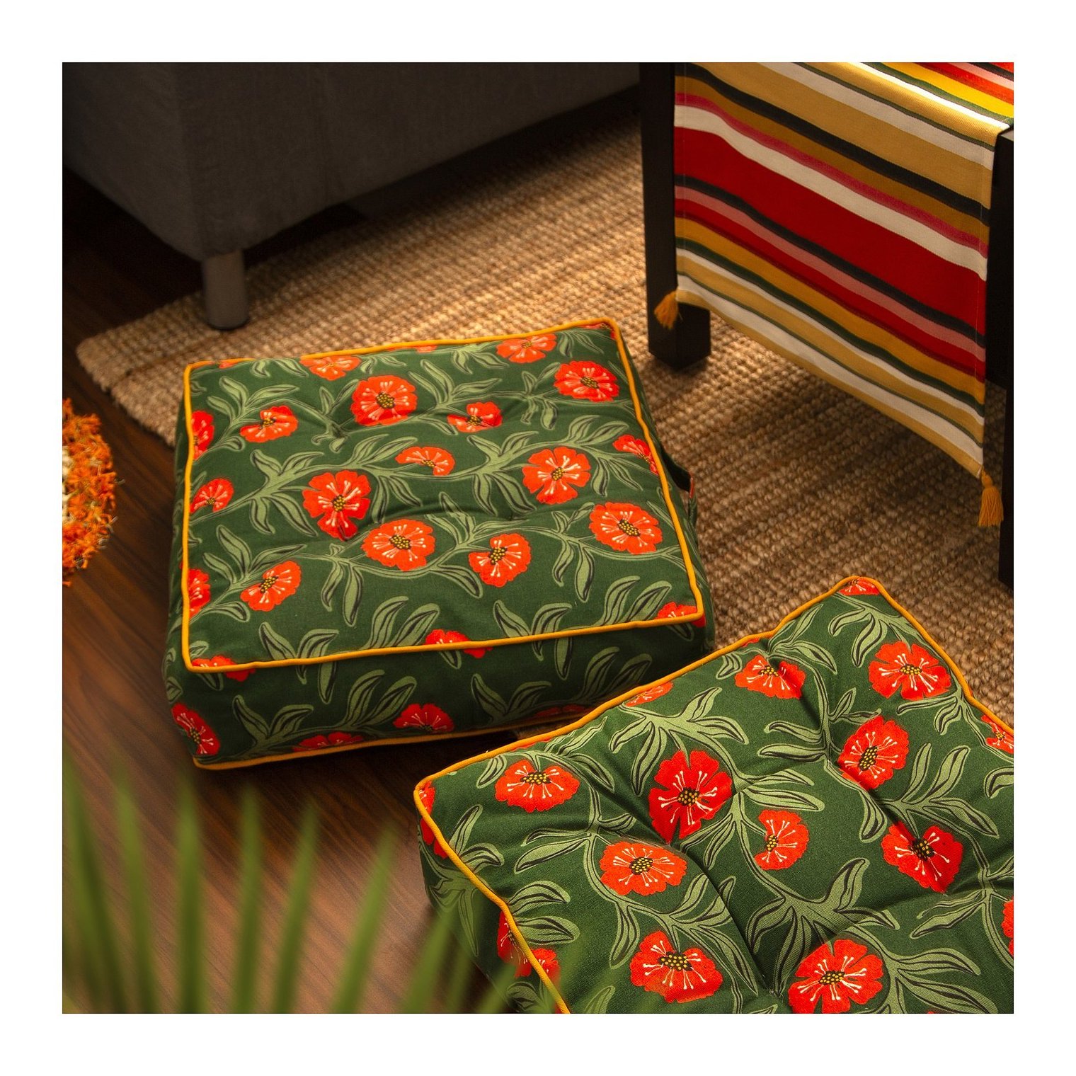 Напольная подушка двухсторонняя, поэтому ее можно разместить с любой стороны.