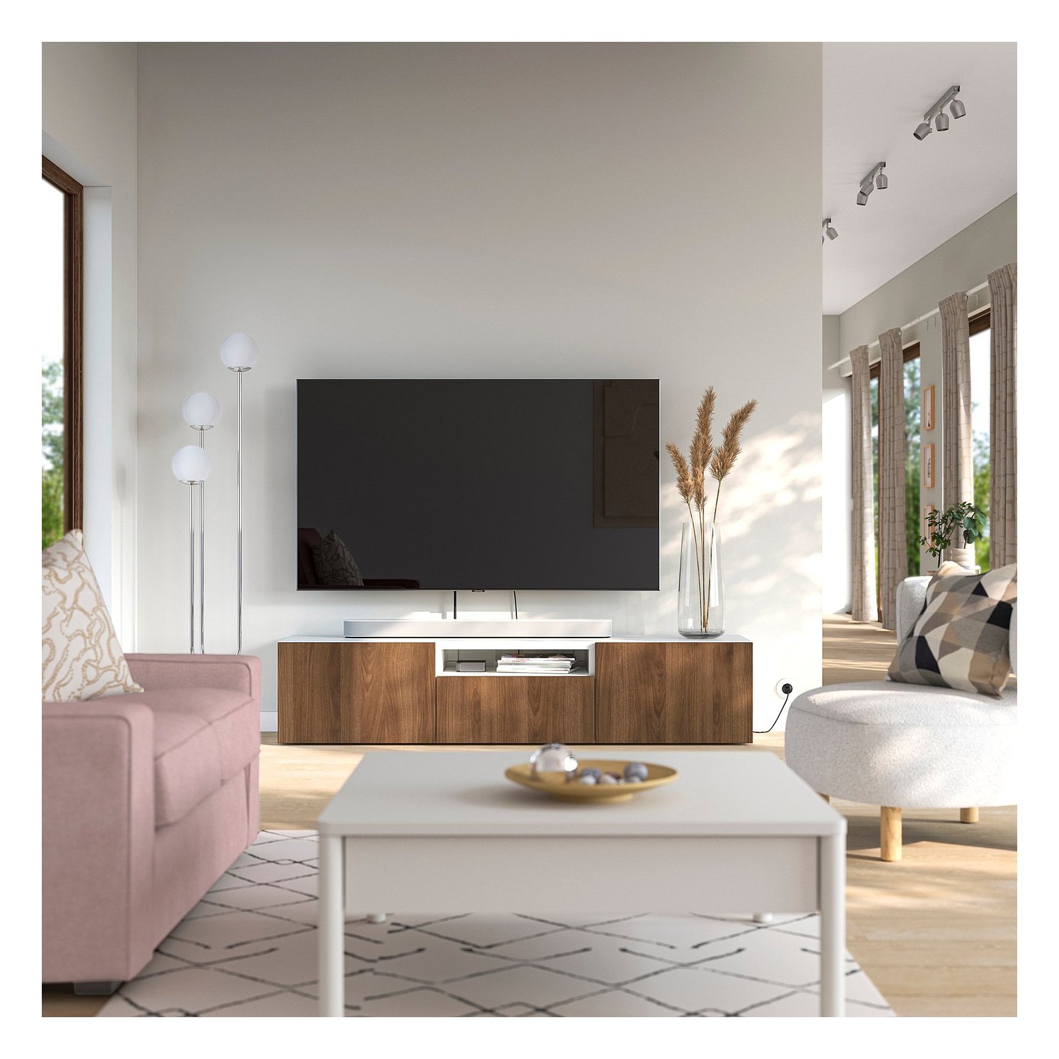 Вы можете удобно спрятать кабели от телевизора и других устройств, оставив их под рукой, поскольку на задней стороне подставки под телевизор есть несколько отверстий для кабелей.