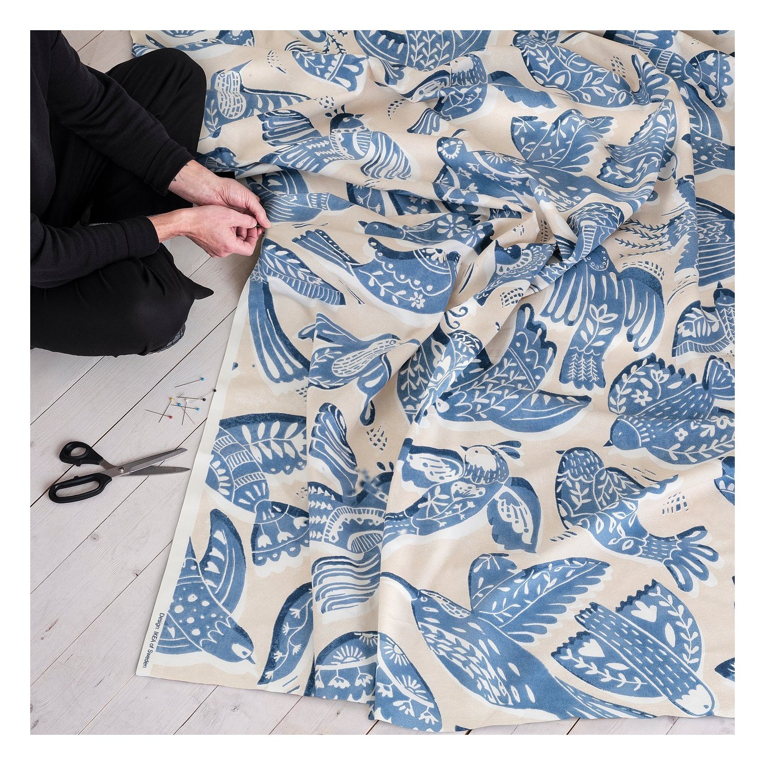 Ткань, нарезанная на отрезы шириной 150 см и длиной 300 см, изготовлена из переработанного хлопка. Ее можно стирать в машине и гладить.