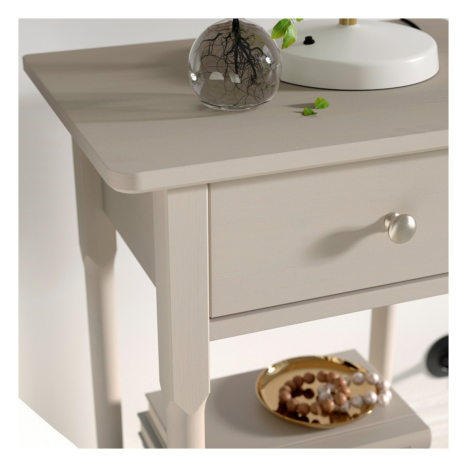 Окрашенная сосновая древесина делает поверхность прикроватной тумбочки более прочной и простой в уходе.