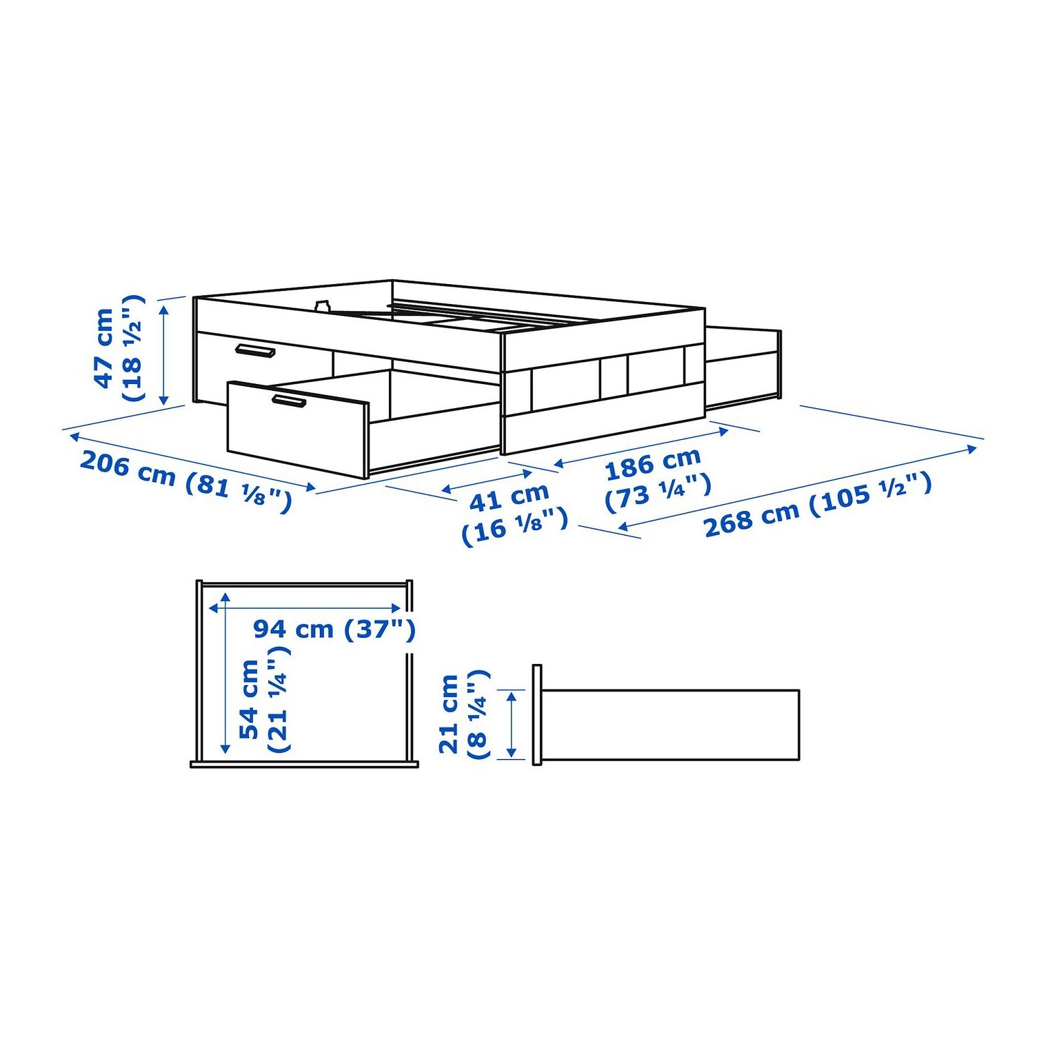 Внутренняя ширина ящика: 94 см