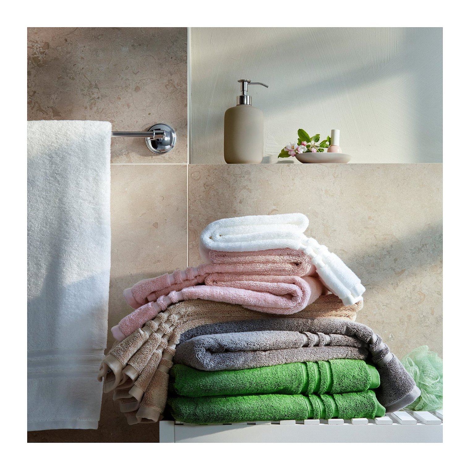 Полотенце доступно в нескольких размерах, что дает вам полный комплект полотенец для различных целей.