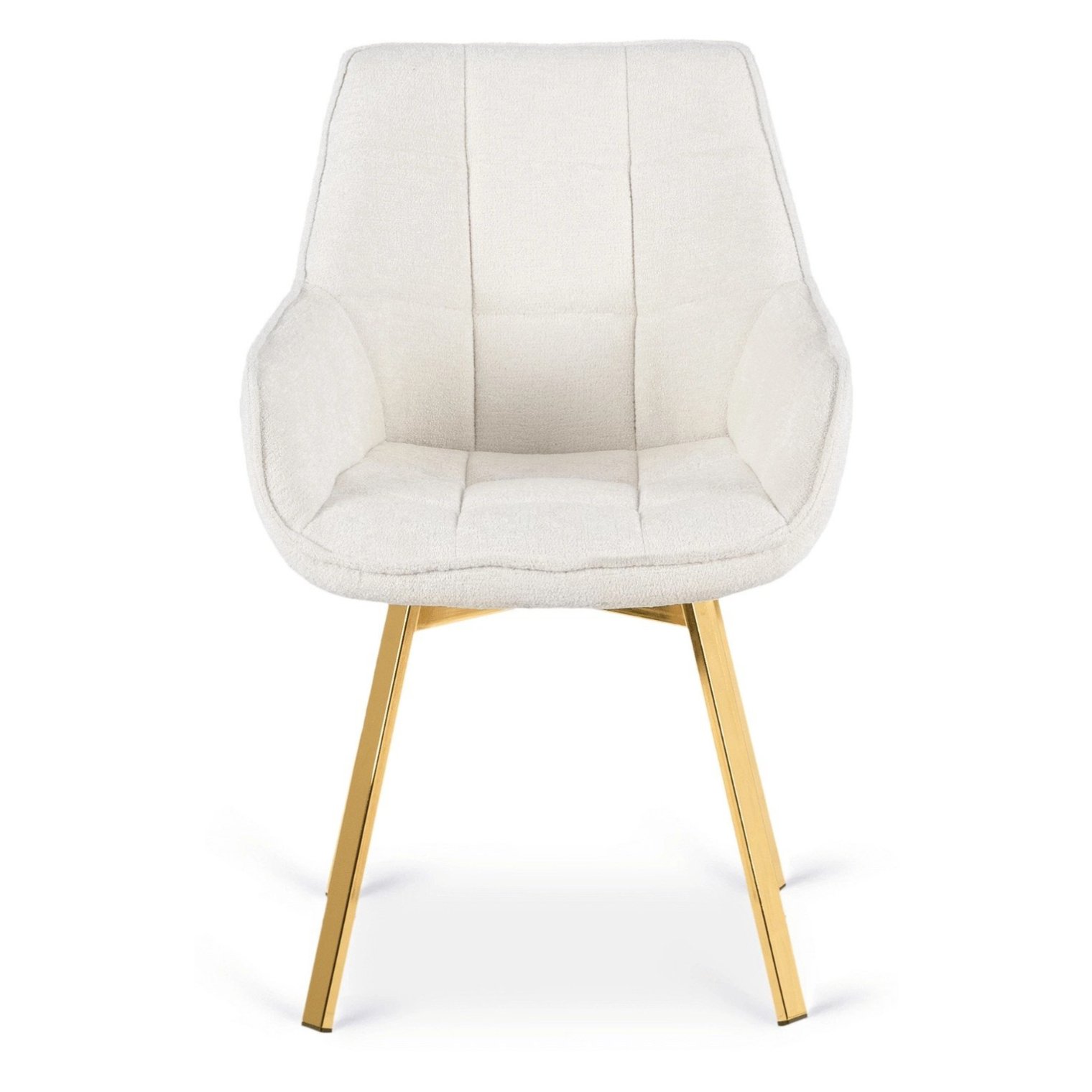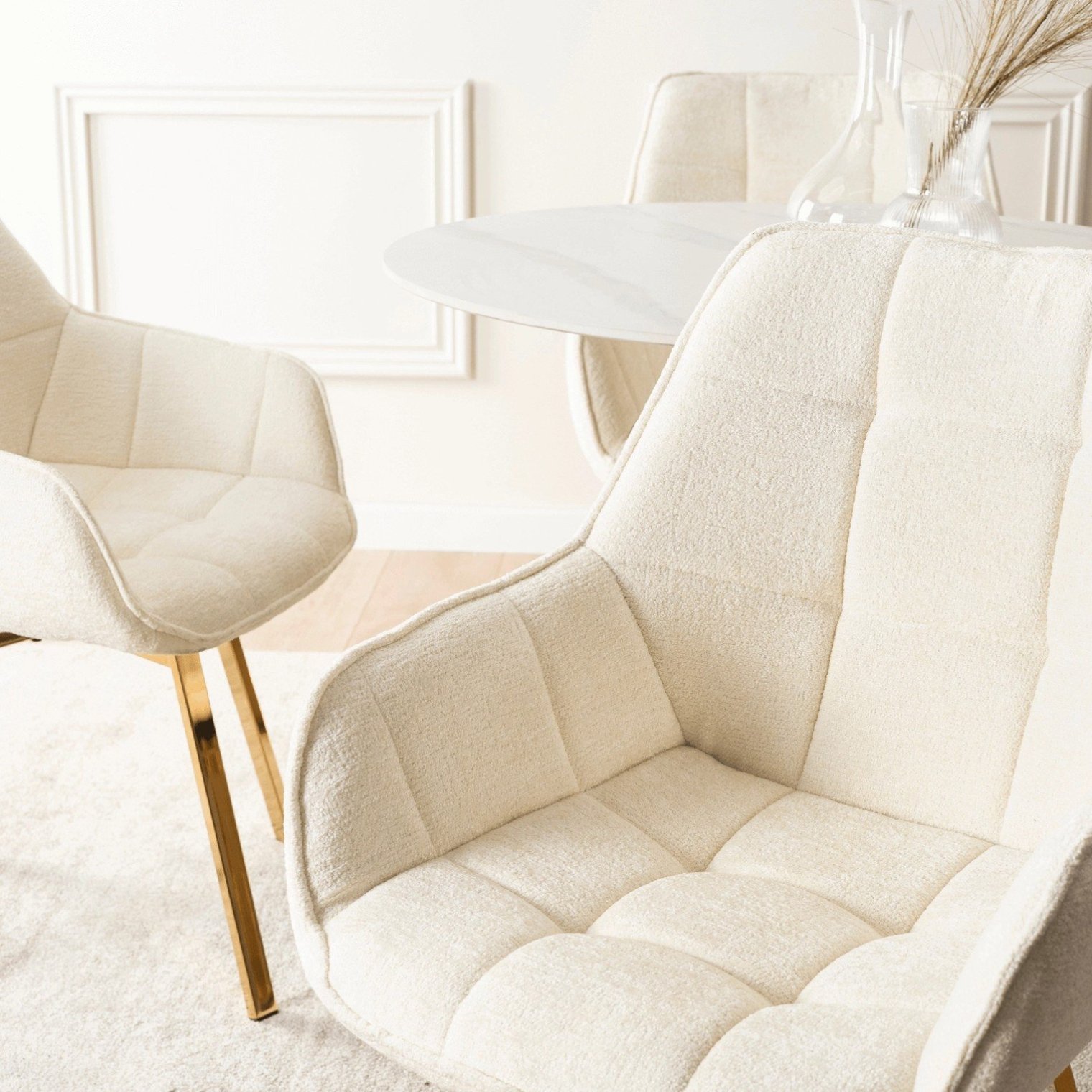 Ищете кресло, которое не только хорошо выглядит, но и мгновенно добавит уюта в ваш интерьер? Кремовое кресло Mia, обитое мягкой тканью букле и установленное на золотистых ножках, сочетает в себе изысканный дизайн и комфорт, который вы почувствуете с первого использования. Эта модель прекрасно впишется в любой интерьер, будь то обеденный стол, письменный стол или туалетный столик, гармонично вписываясь в современный интерьер.