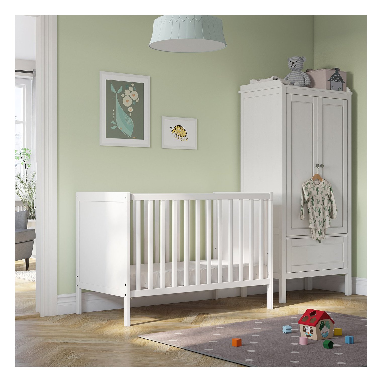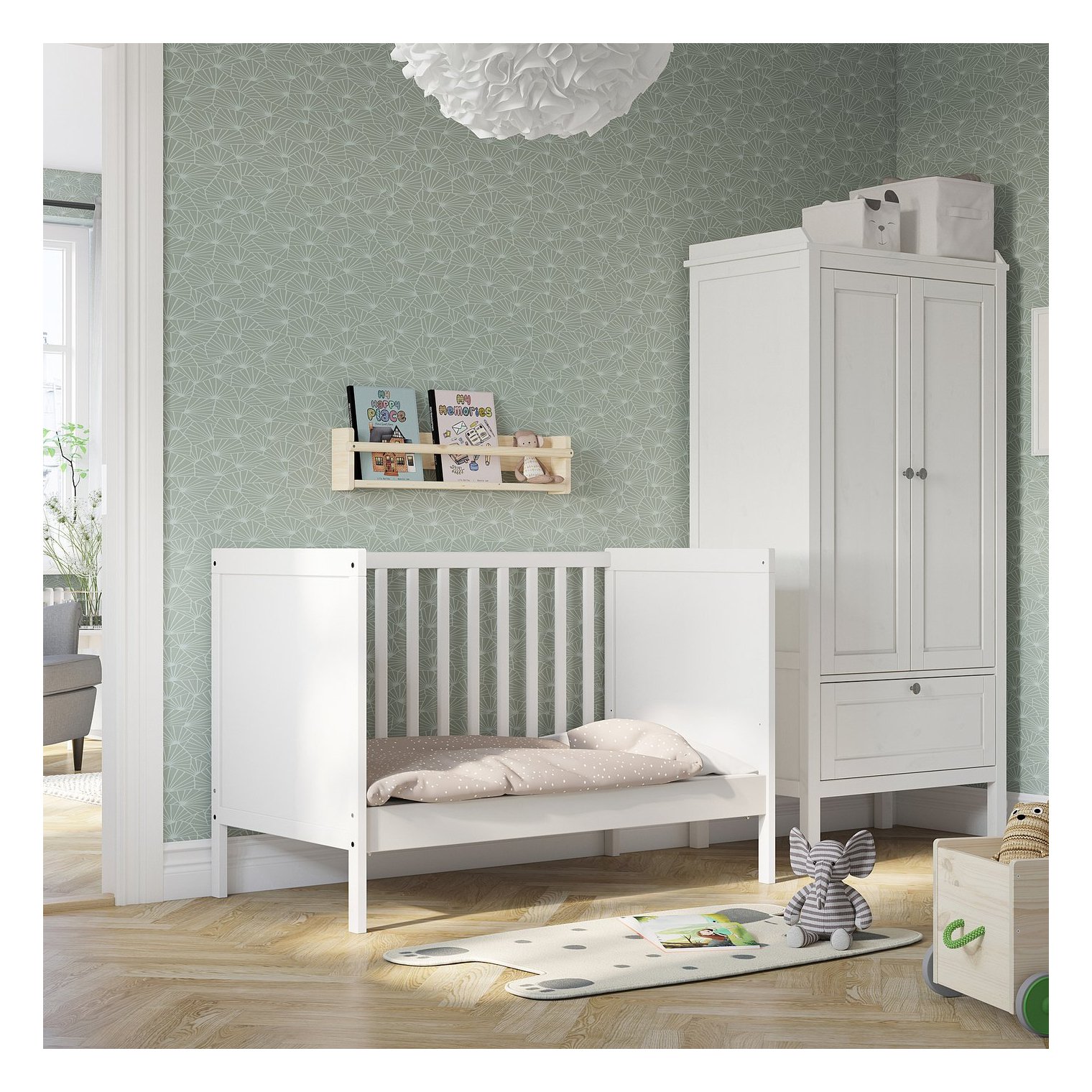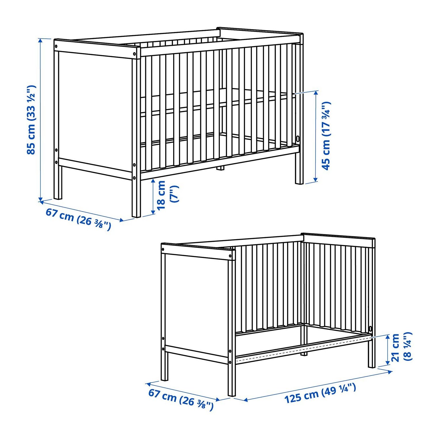 Одну сторону кроватки можно снять, когда ребенок станет достаточно взрослым, чтобы входить в кроватку/выходить из нее.