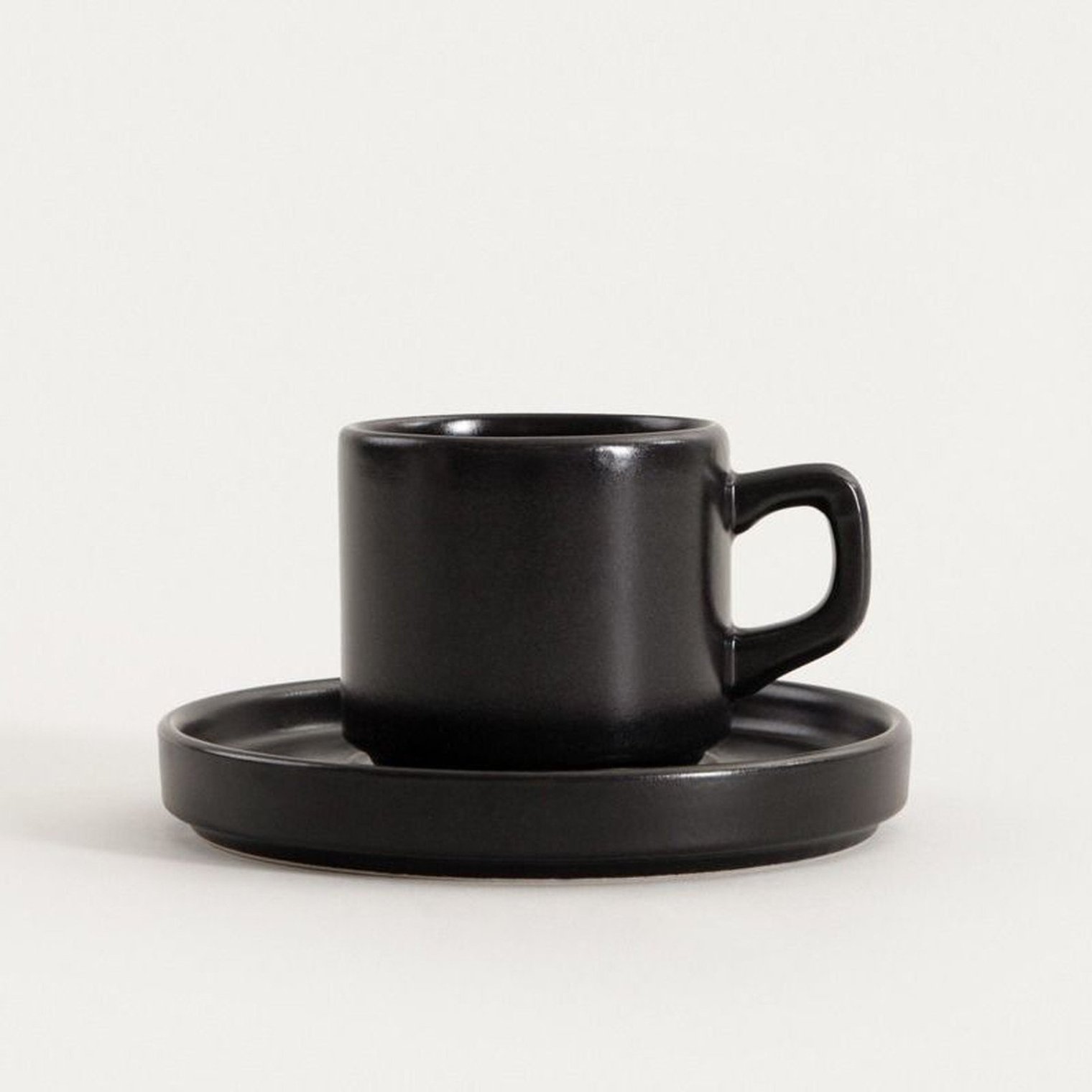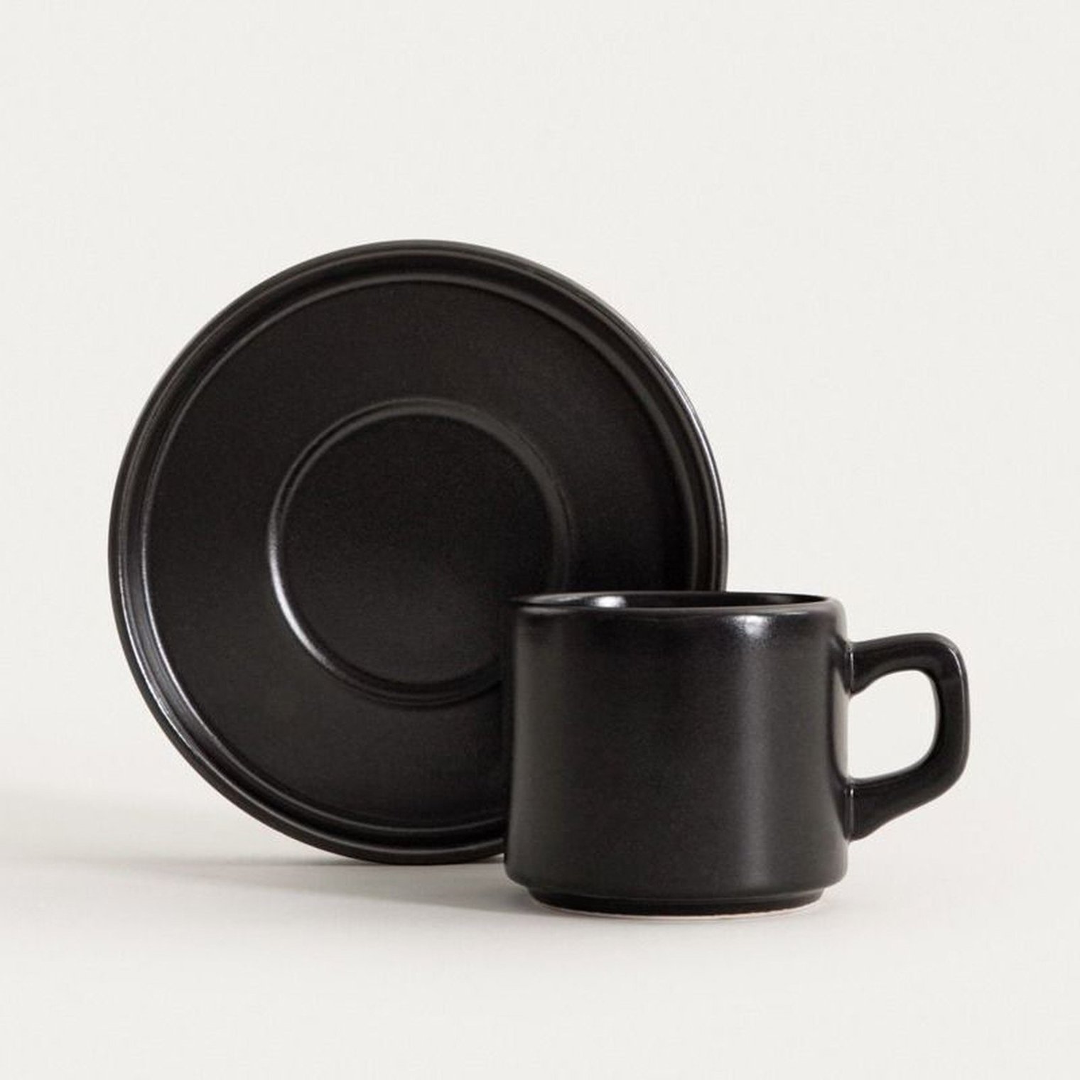 Черная чашка с блюдцем.
