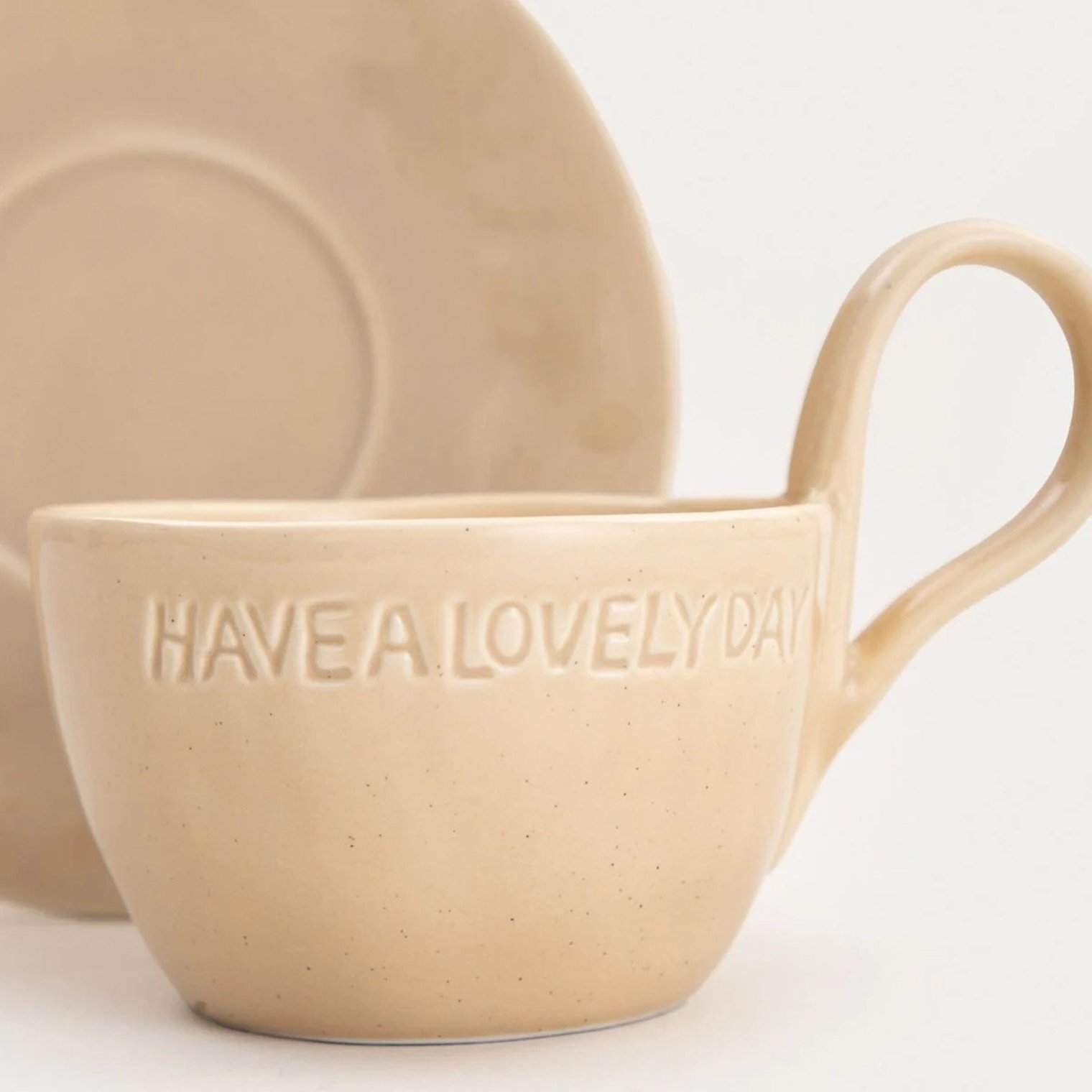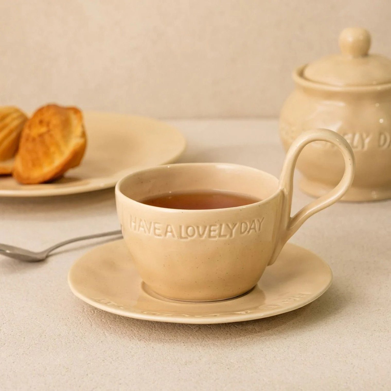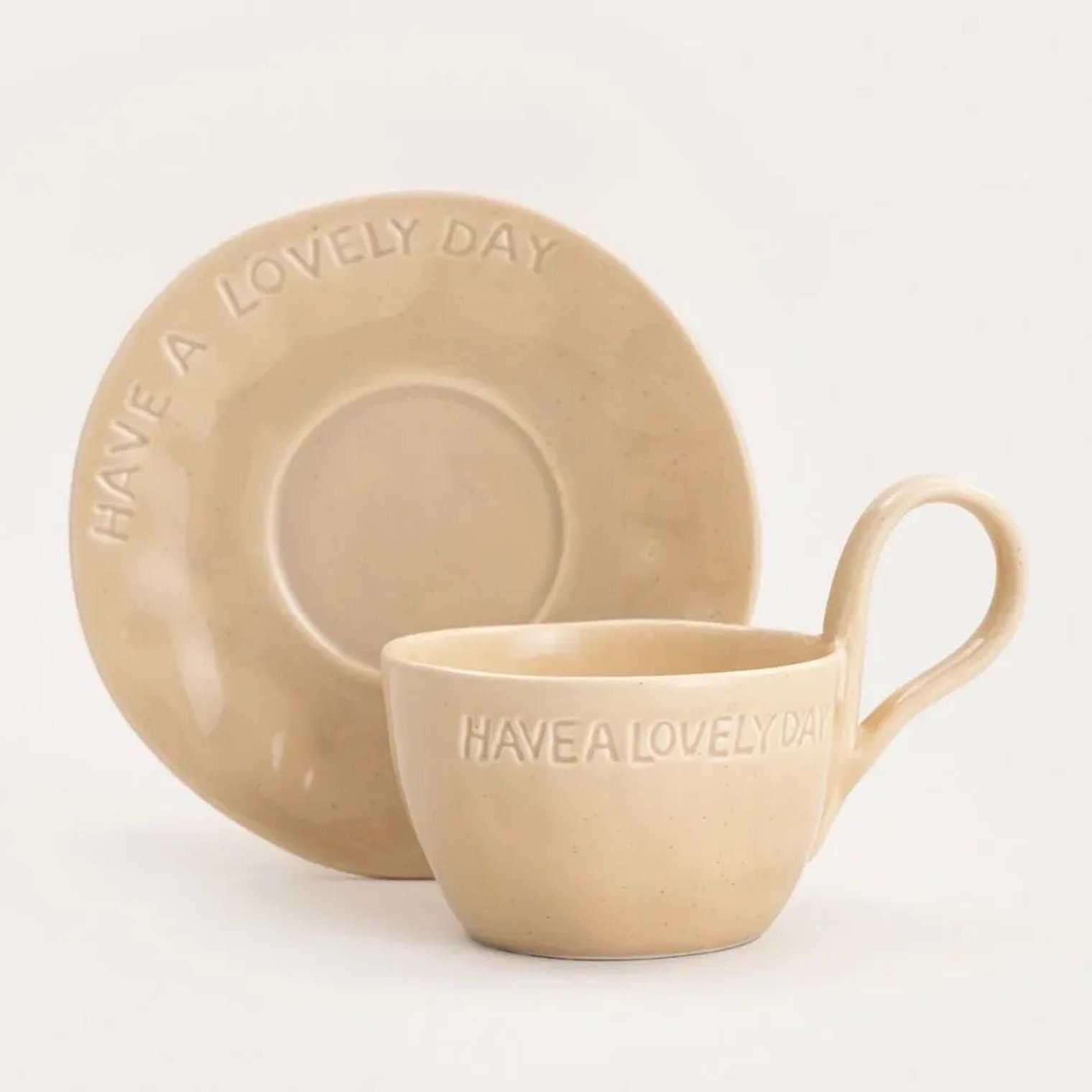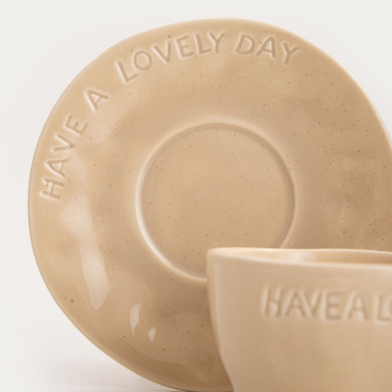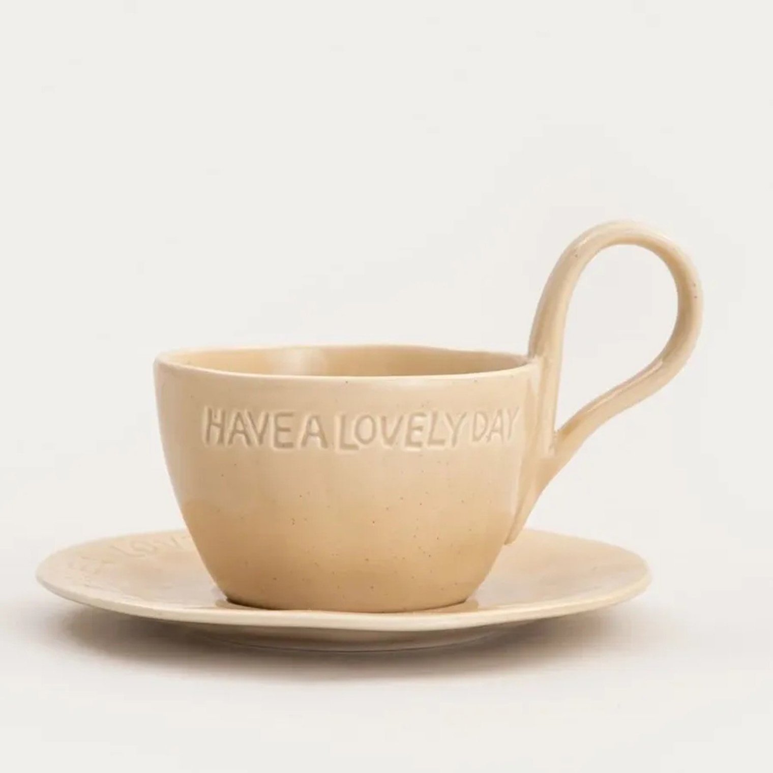 - Декоративная надпись «HAVE A LOVELY DAY» ненавязчиво украшает чашку и блюдце