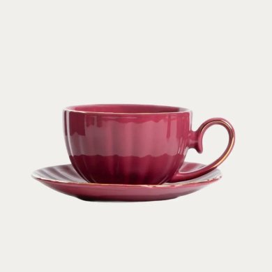 Большая бордовая чашка с блюдцем, 0,25 л.