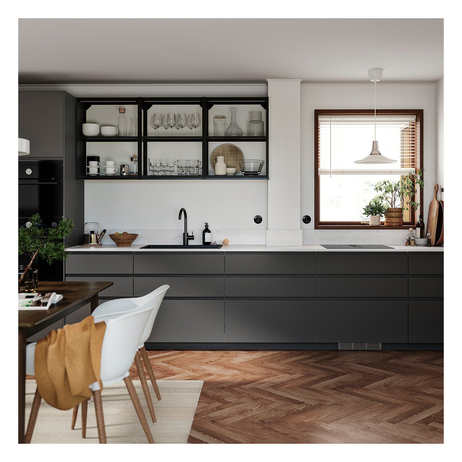 ВОКСТОРП – гладкая дверь со встроенными ручками. Они привносят чистые линии и придают кухне открытый и современный вид.
