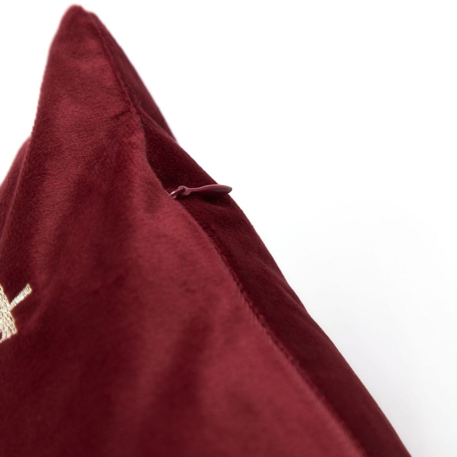 Наволочка ARBA изготовлена из бордовой ткани – она прекрасно сочетается как с яркими цветами, белым, так и с классическим чёрным. Наволочка украшена простой вышивкой в виде ёлочки золотой нитью.