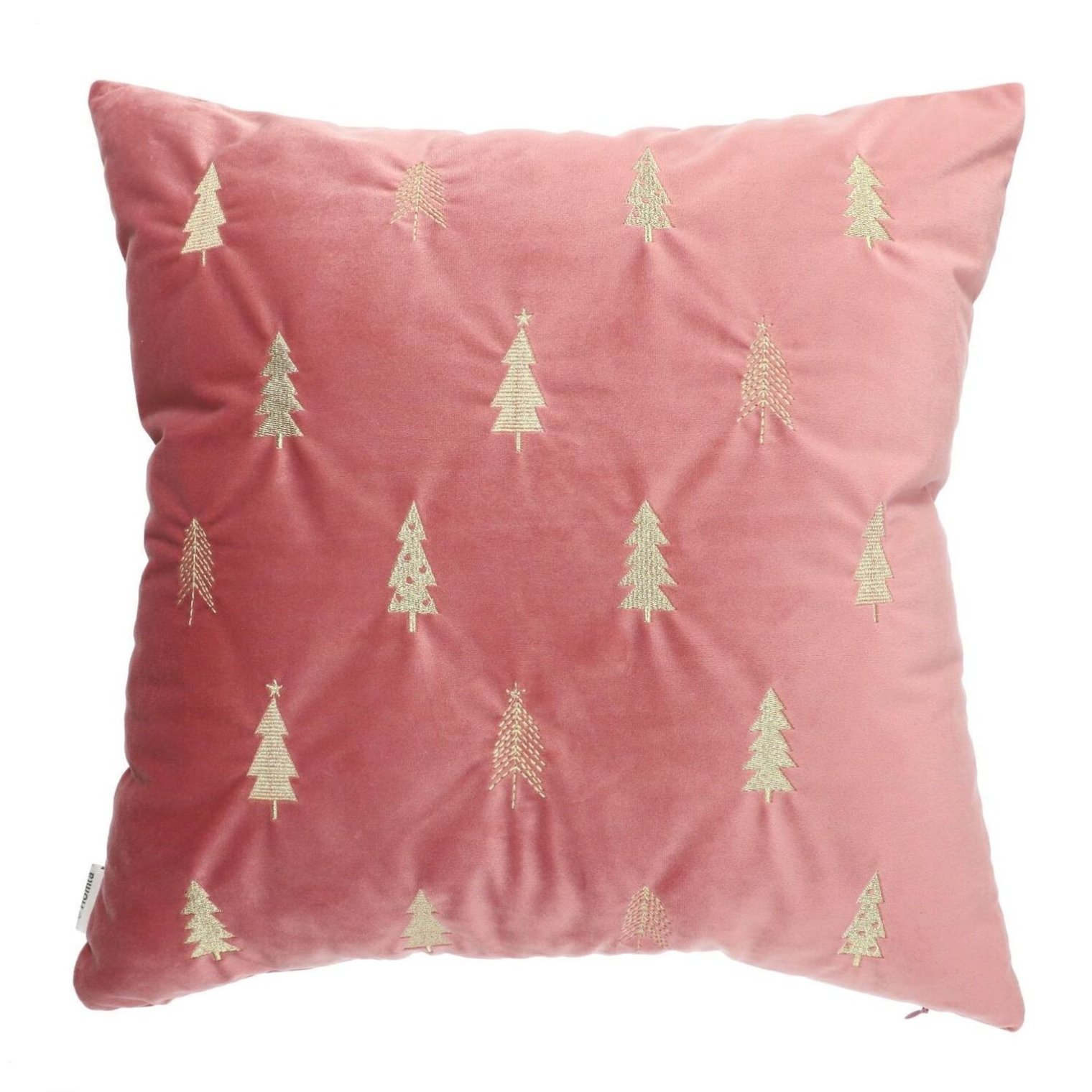 Наволочка ARBA выполнена из яркой розовой ткани. Она украшена простыми рождественскими ёлочками, вышитыми золотой нитью. Наволочка квадратная, размером 45х45 см.