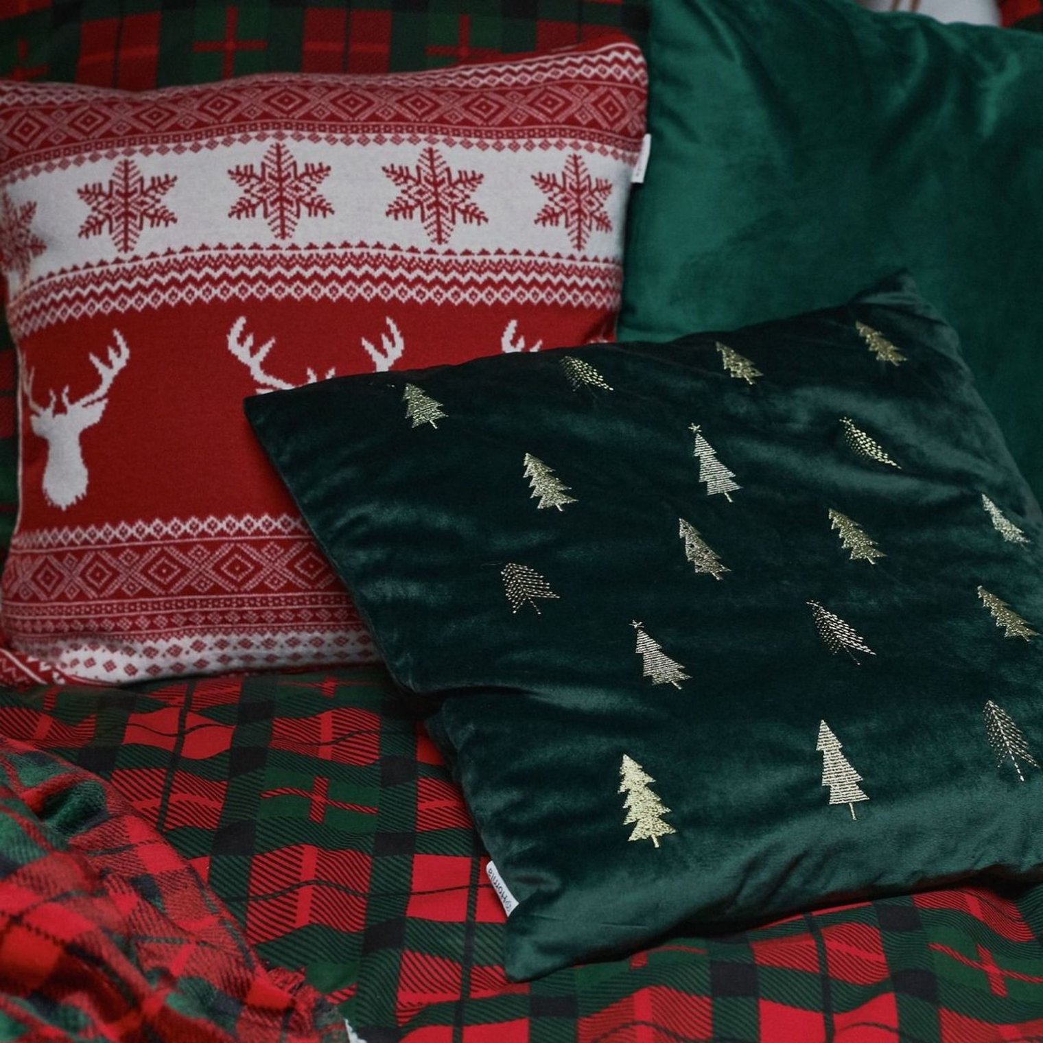 Когда все мечтают о белом Рождестве, вы хотите яркого? Нет ничего проще! Украсьте свой дом праздничными аксессуарами этого цвета, начиная с текстиля. Наволочка ARBA невероятно мягкая и приятная на ощупь. Элегантный оттенок бутылочно-зелёного и вышитая золотая рождественская ёлка очаруют ваших гостей.