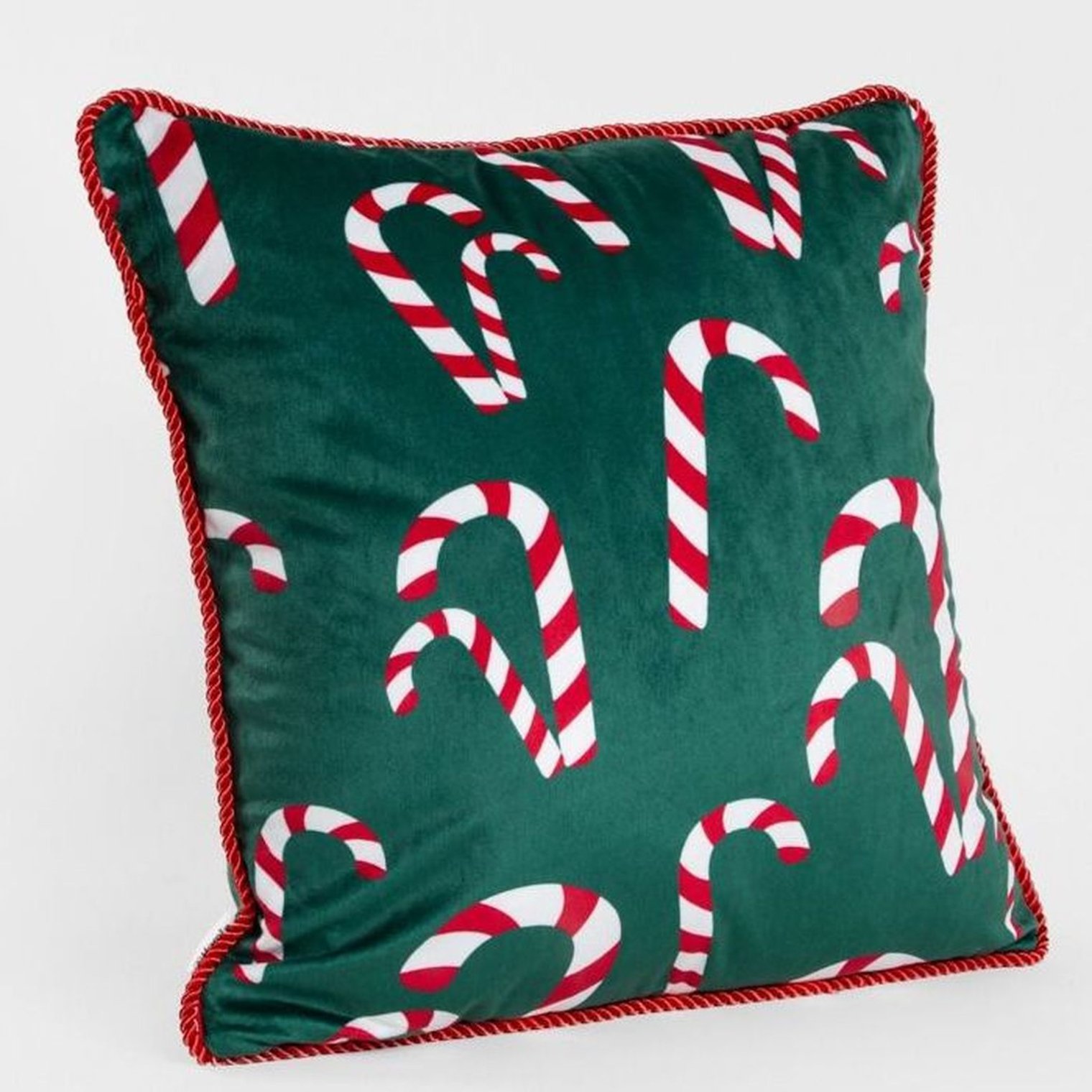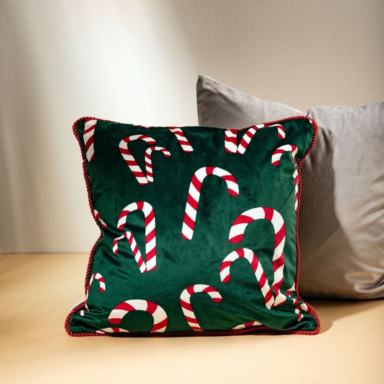 Чехол для подушки INGRA — это праздничный акцент, который привнесет в ваш дом рождественское волшебство. Очаровательный мотив «Леденец» на темно-зеленом фоне идеально дополнит праздничную атмосферу. Декоративная красная отделка добавит нотку смелости и элегантности, создавая идеальное праздничное украшение.