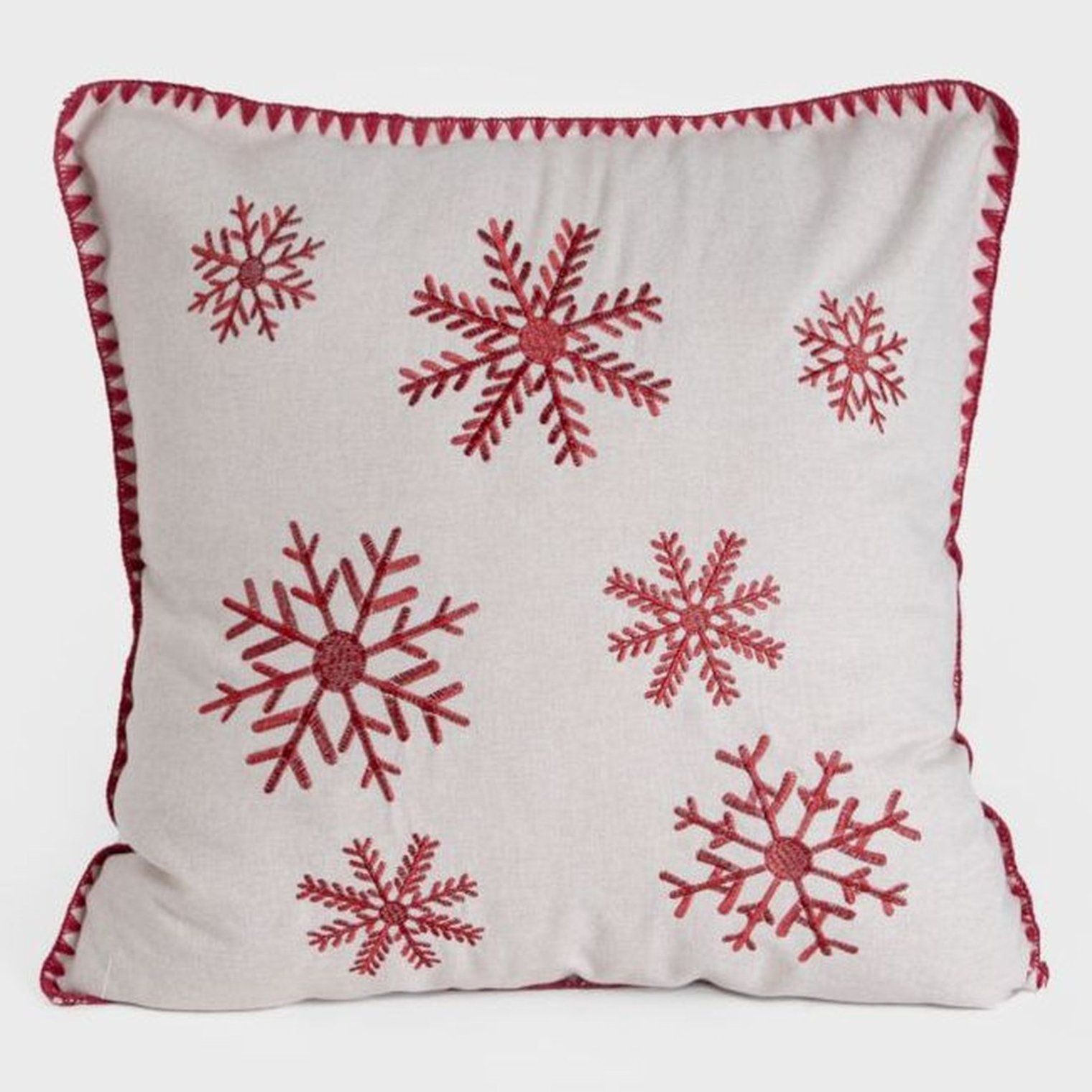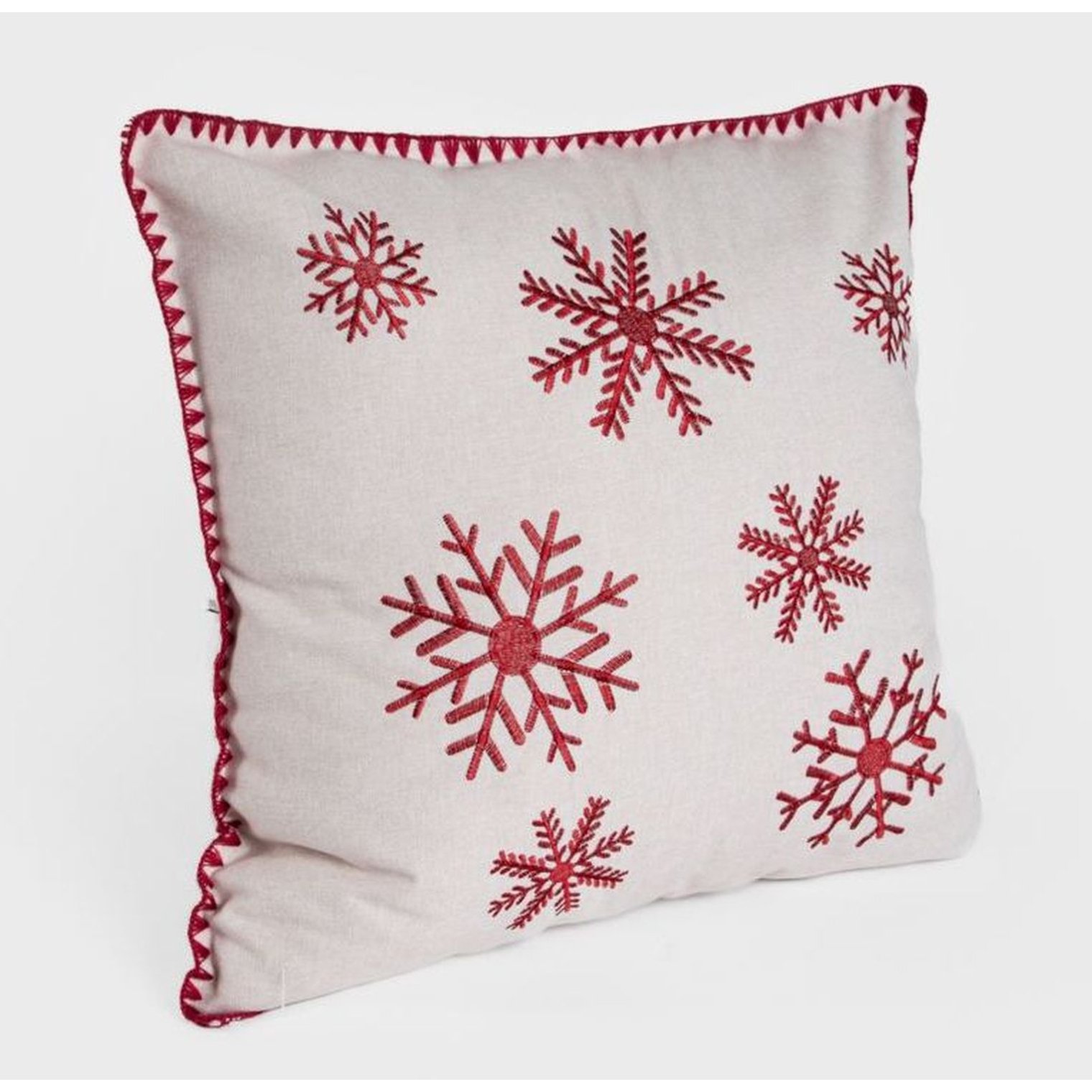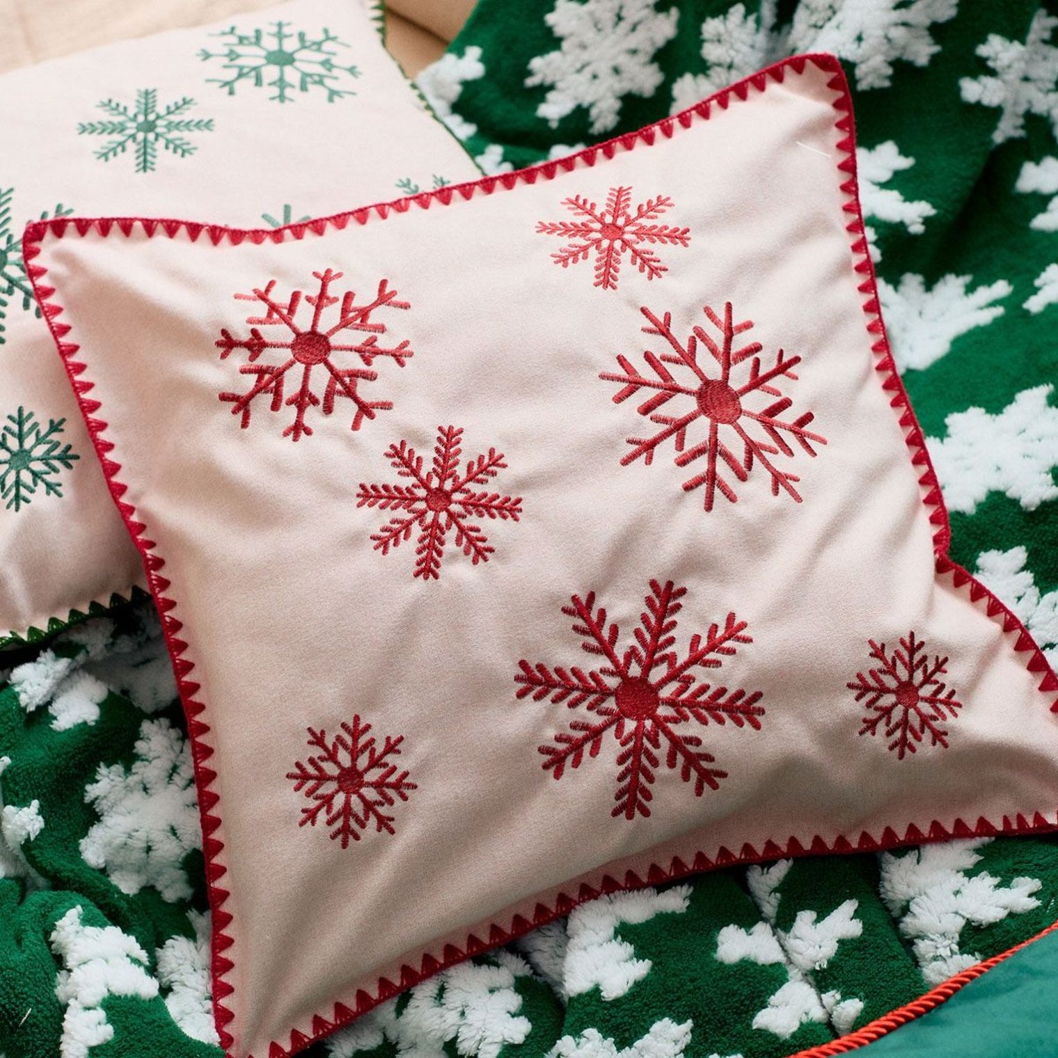 Наволочка ORIEL классического размера 45 x 45 см универсальна и подходит для стандартных подушек. Рисунок с красными снежинками идеально дополнит ваши рождественские украшения и добавит неповторимого очарования вашему интерьеру. Она будет прекрасно смотреться на диване, кресле или кровати.