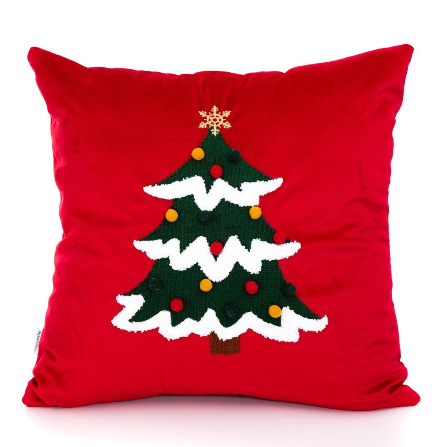 Хотите украсить свой дом рождественским декором? Наволочка HOMLA TINGLA добавит праздничного настроения даже вашему дивану. Наволочка украшена вышитой елочкой, украшенной разноцветными шарами в виде маленьких помпонов. Она будет прекрасно сочетаться с другими декоративными подушками и теплым пледом.