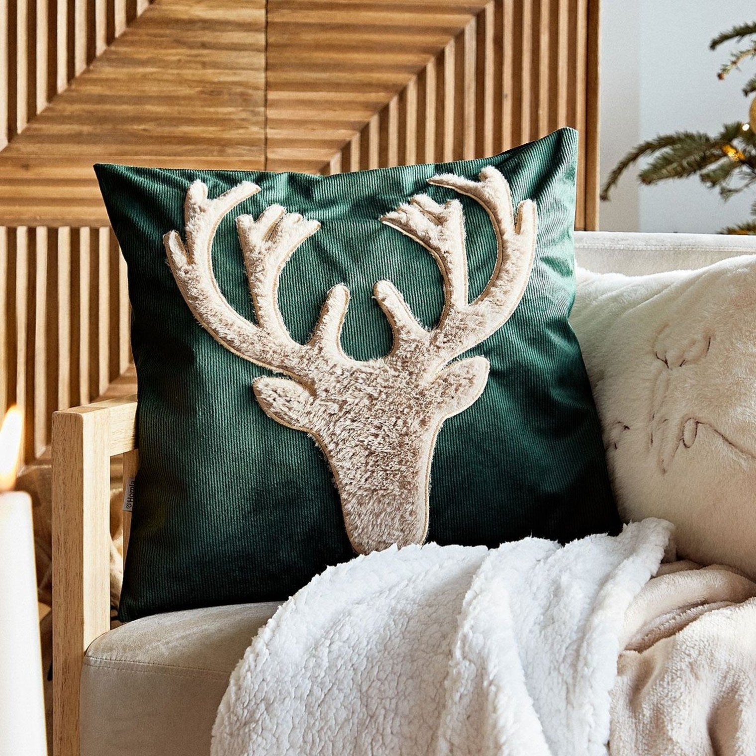 Наволочка HOMLA VINTEC с плюшевым узором в виде головы оленя с красивыми рогами. Надев на подушку, она преобразит ее и станет прекрасным дополнением к вашему рождественскому интерьеру. Зелено-коричневая цветовая гамма прекрасно дополнит рождественские украшения и пледы.
