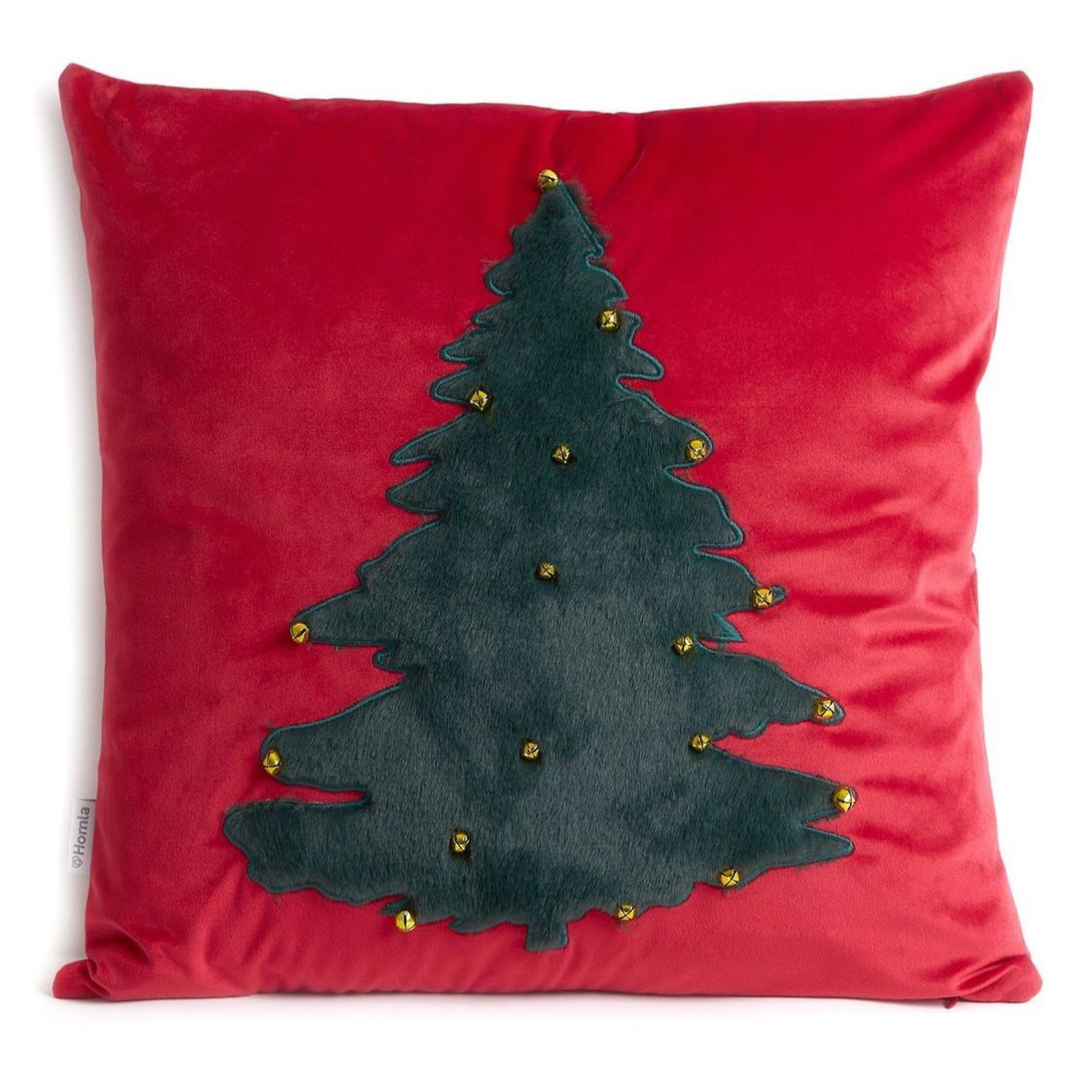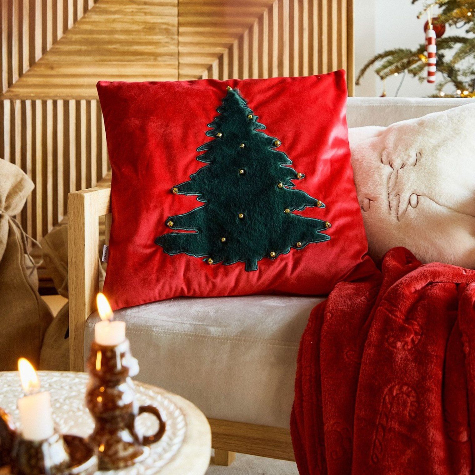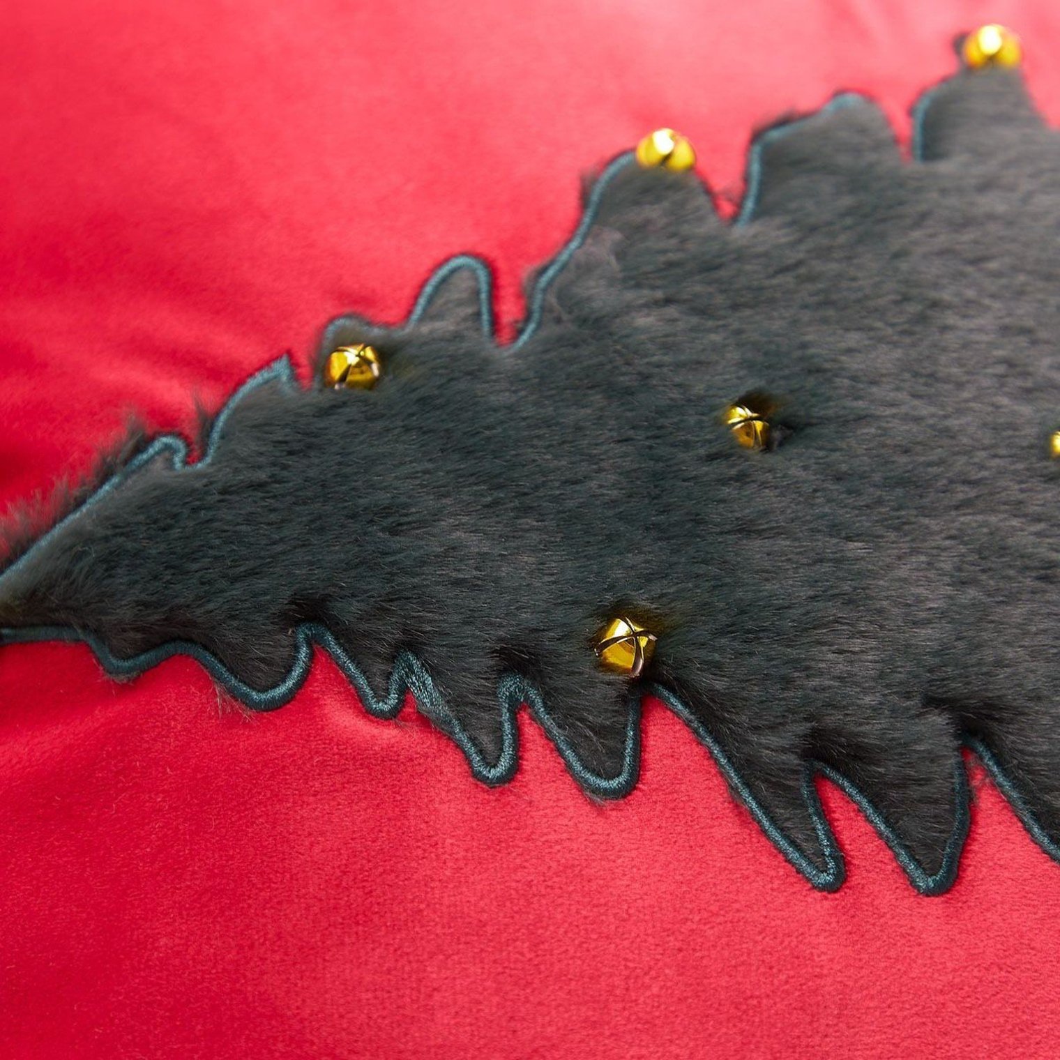 Очаровательная наволочка HOMLA ZILE с рождественским мотивом. Лицевая сторона наволочки украшена тёмной пушистой ёлочкой. Она украшена золотистыми колокольчиками, которые выполняют функцию елочных шаров. Красный фон делает наволочку идеальным дополнением к любому праздничному декору, добавляя уюта и радости.